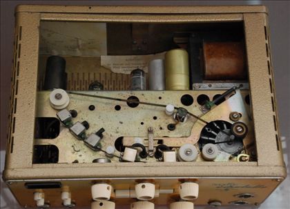 Cosmetically this is really close to 'near mint' - it is gorgeous - see the pics. The metal of the chassis inside is discoloured as normal, and one spring looks a little tired - but wasn't replaced because it's doing its job fine.