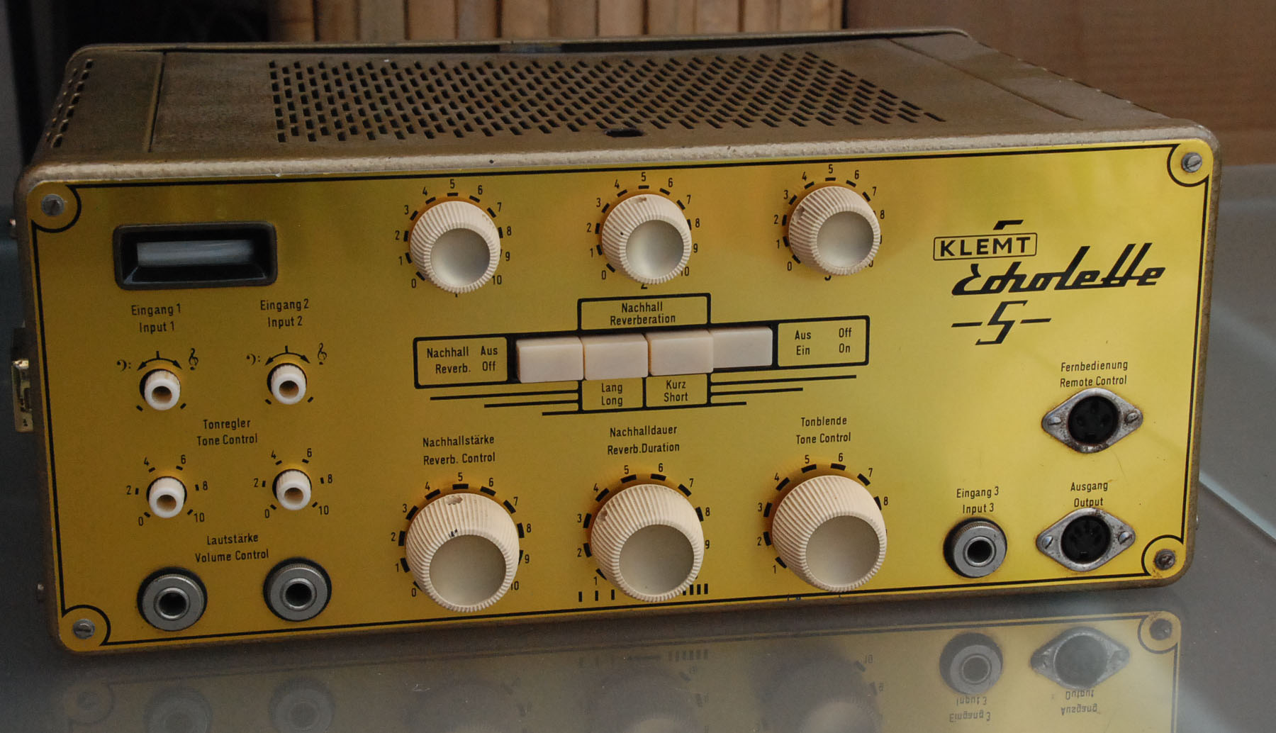 Unlike many vintage tube echoes, this uses 1/4 inch jacks for audio inputs, which makes life easier.