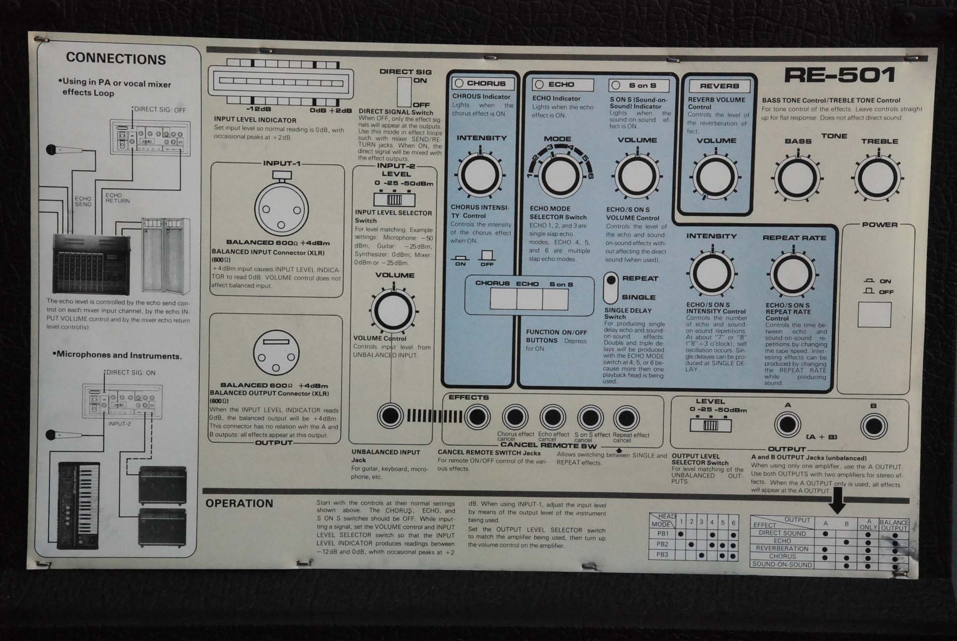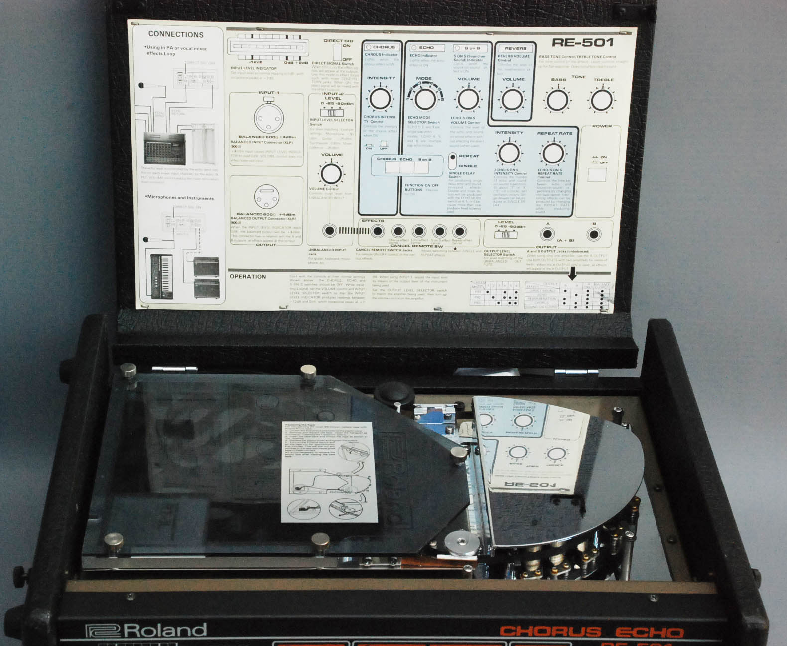 Completely gorgeous RE-501 - we don't think you'll find a better one in the world. One slight scuff on the top, one on the side, but otherwise it's difficult to believe this machine is 33 years old. It hardly looks three years old - and certainly has never been gigged at all, or even used much in a home environment.