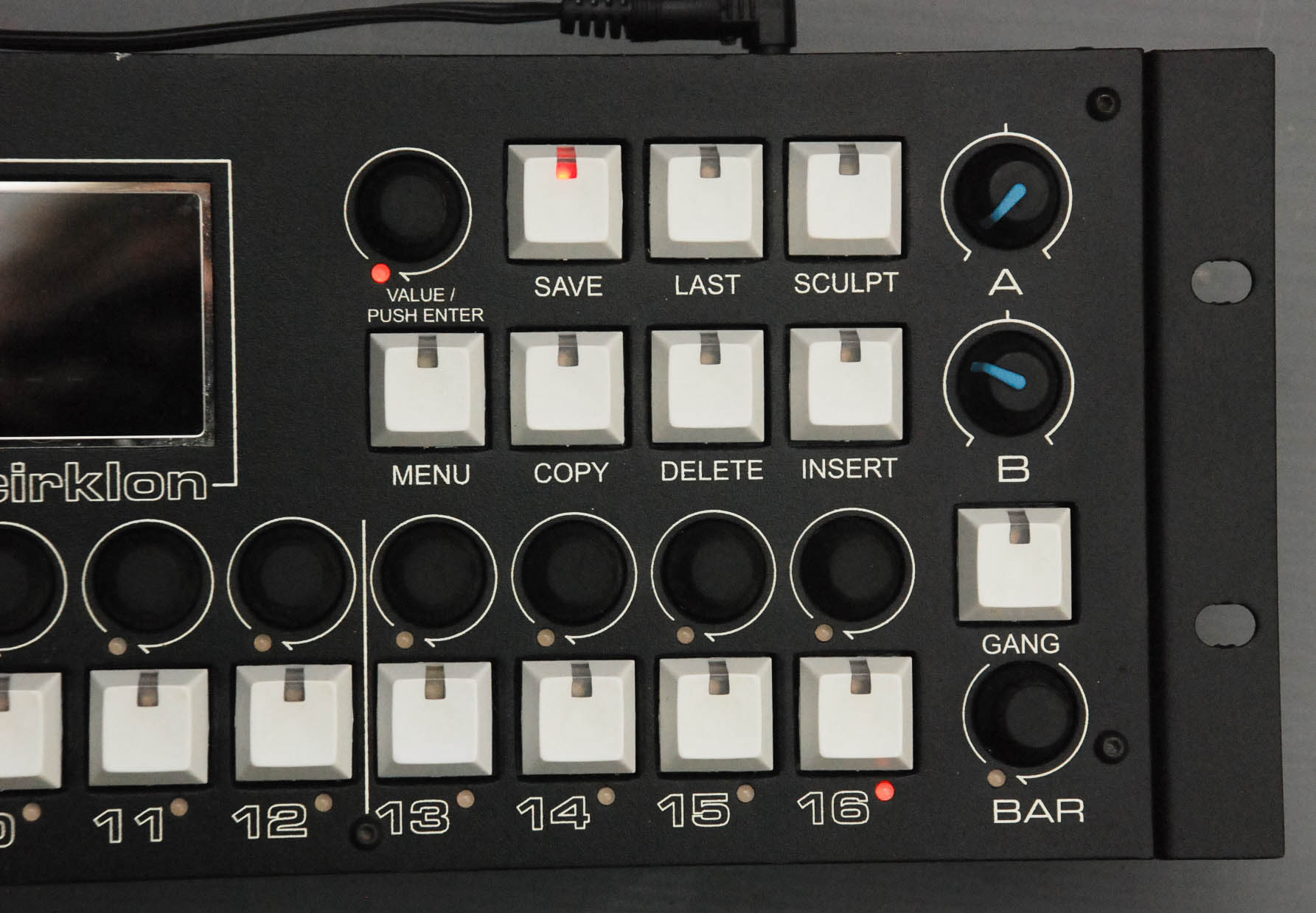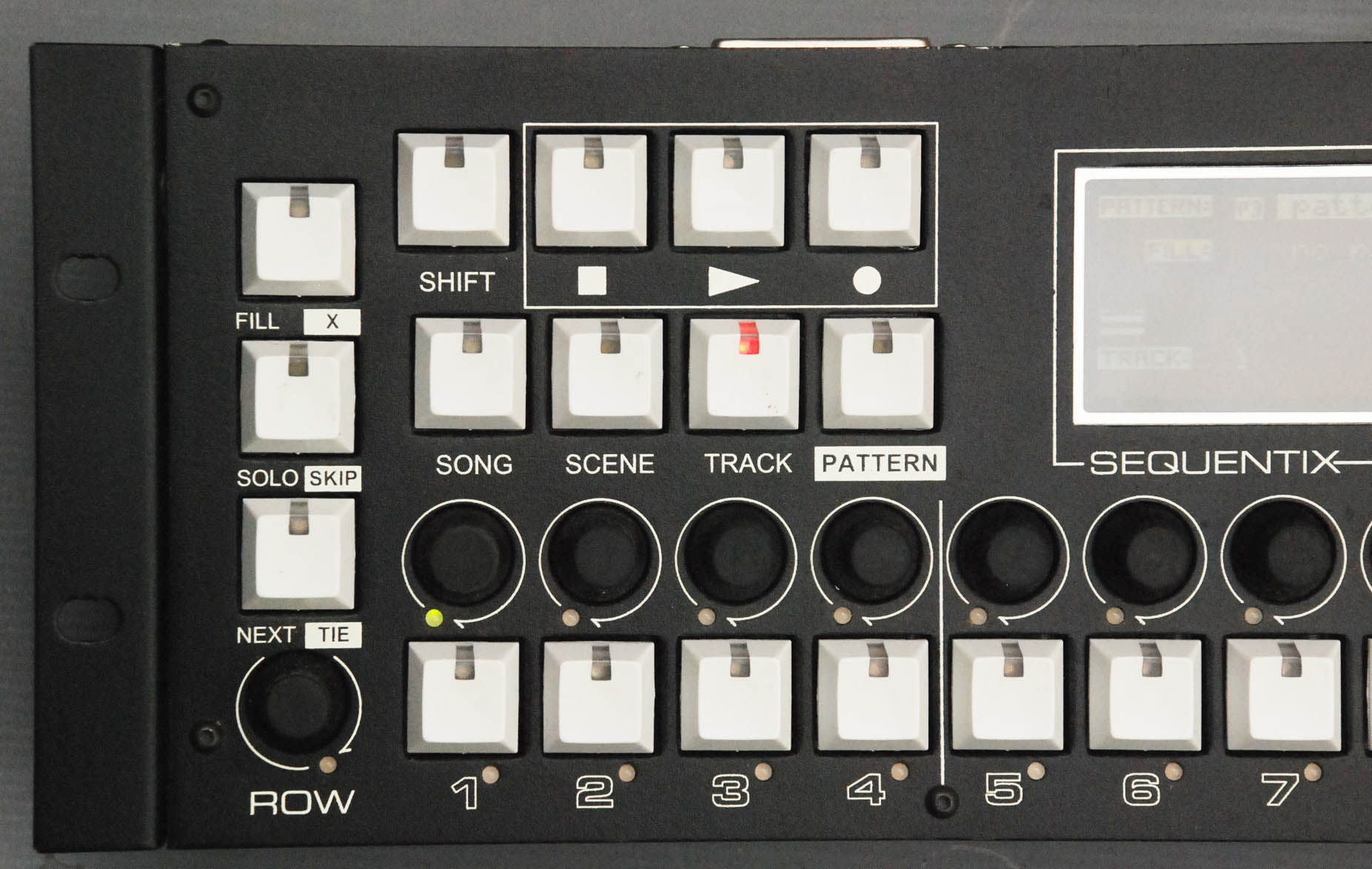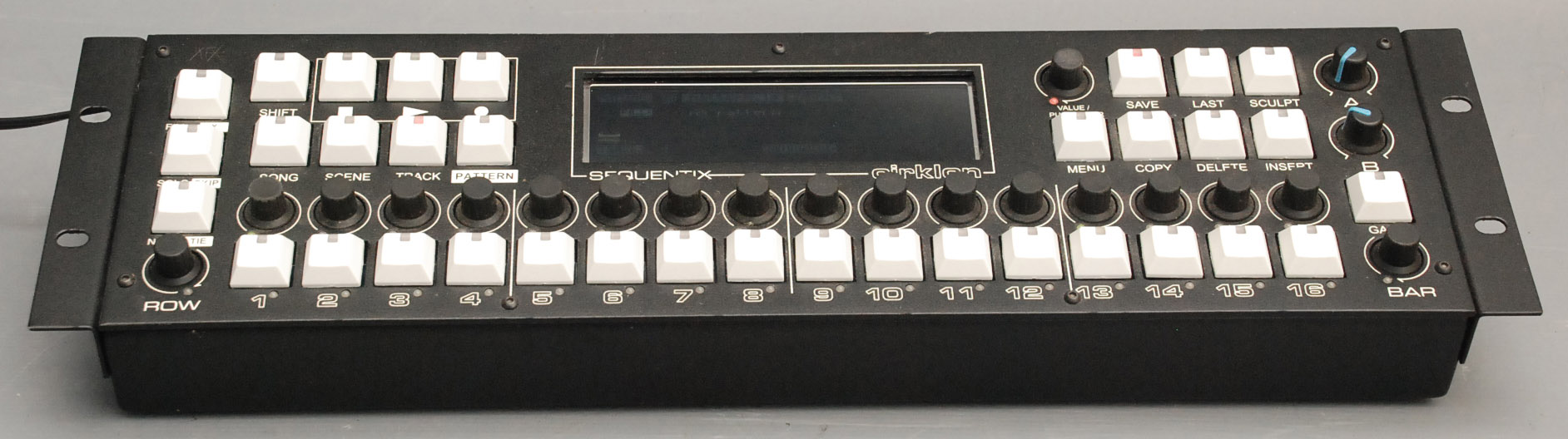 Great recent hardware sequencer, complete with the CVIO port giving 16 CV and 8 gate outputs. Not in immaculate condition at all - a bit scuffed in parts, a scratch to the left above the display, and the owner has scratched his logo in the top left corner.