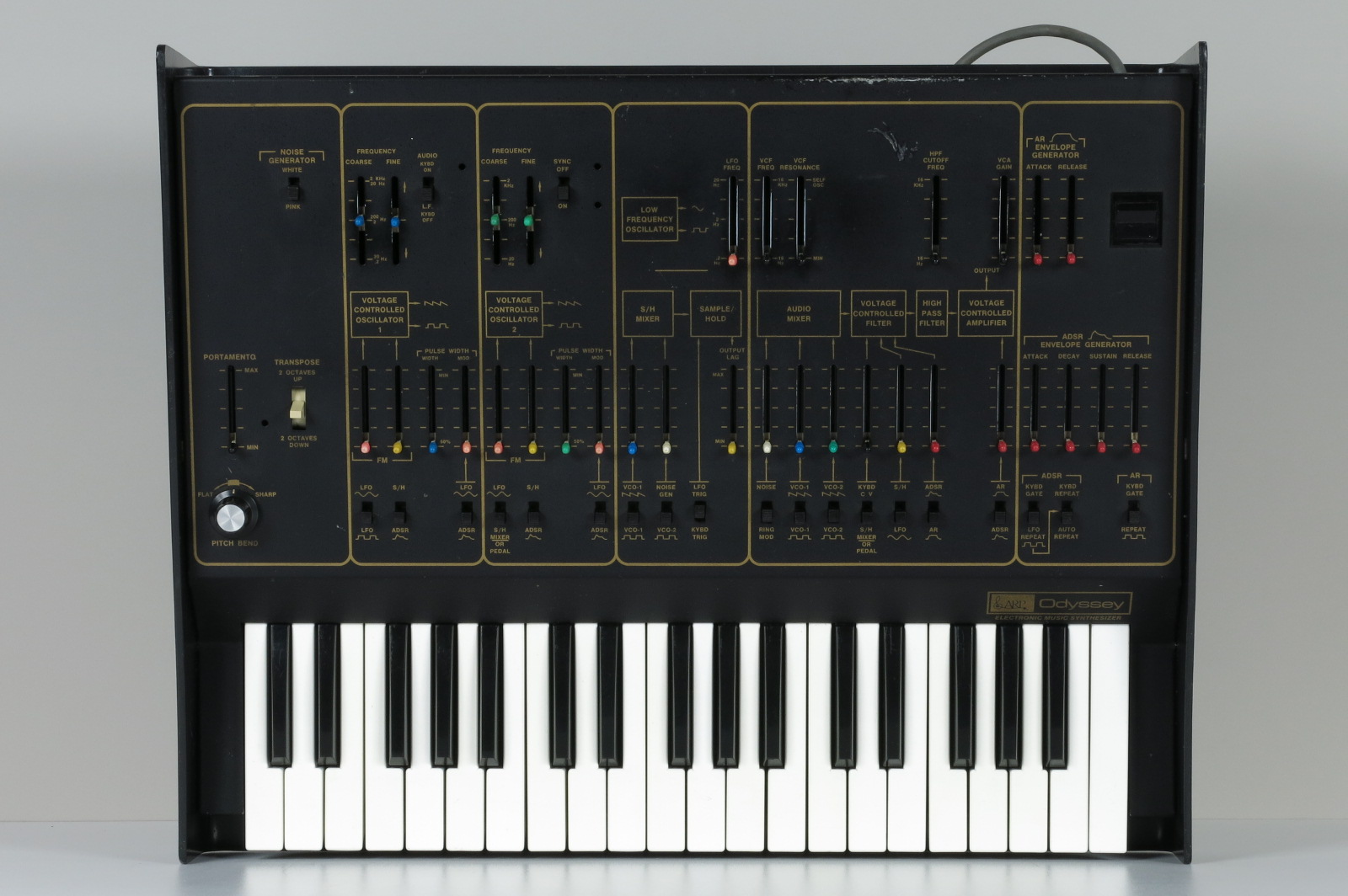 Vintage ARP Odyssey Mk2, model 2813 with modified 4075 filter. The synth is been overhauled in May 2015 for 700 Euro and still working fine. Two faders are slightly crackling and the light in the power switch is not brighting when the synth is powered on. Optical it's in good condition, but there is some wear and tear and some scratches on it. Modified to a 220V version with European plug. |
