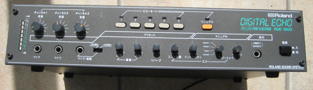 Roland RDE-1800, very unique and rare outside of Japan, 'digital' echo which is actually a BBD analogue delay and spring reverb, 100 volt version supplied with a step down converter, in good condition, apart from the led lights on the preset delay switches sometime do not work , just a bad connection or dry joint but this does not effect the working of the unit. ***More info from the owner on this extremely rare effects unit:' I have checked over the RDE-1800 by hooking it up with the Teisco 60f and the reverb and delay are mixed on both the front and back outputs, so there is no separate output for reverb only though this should be an easy mod for a tech.