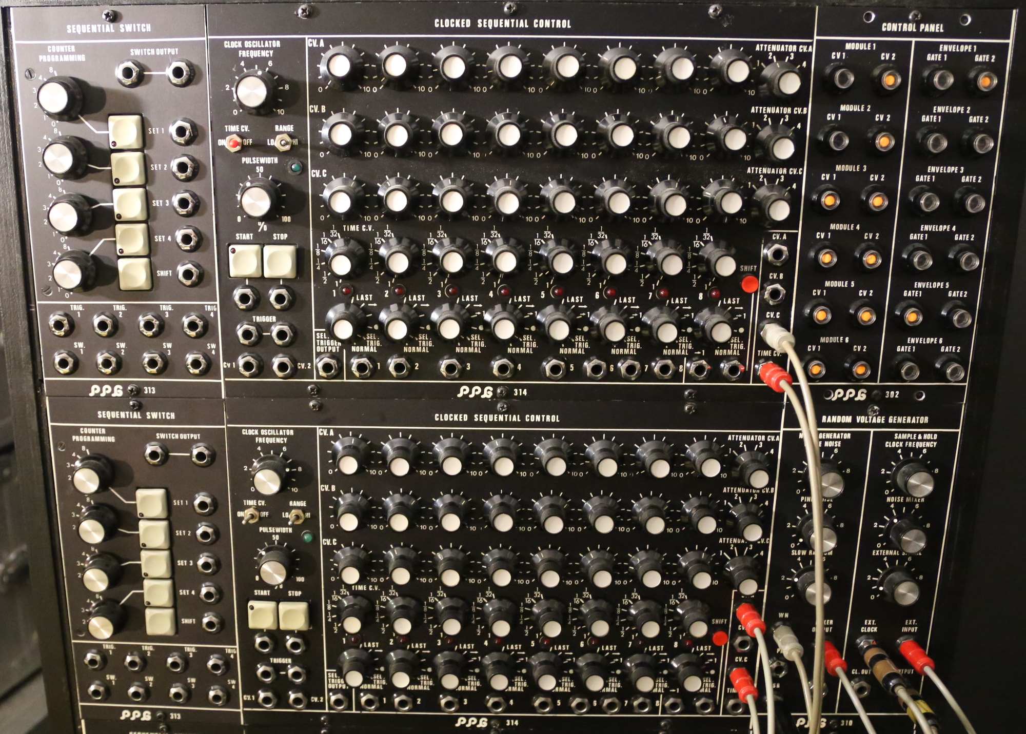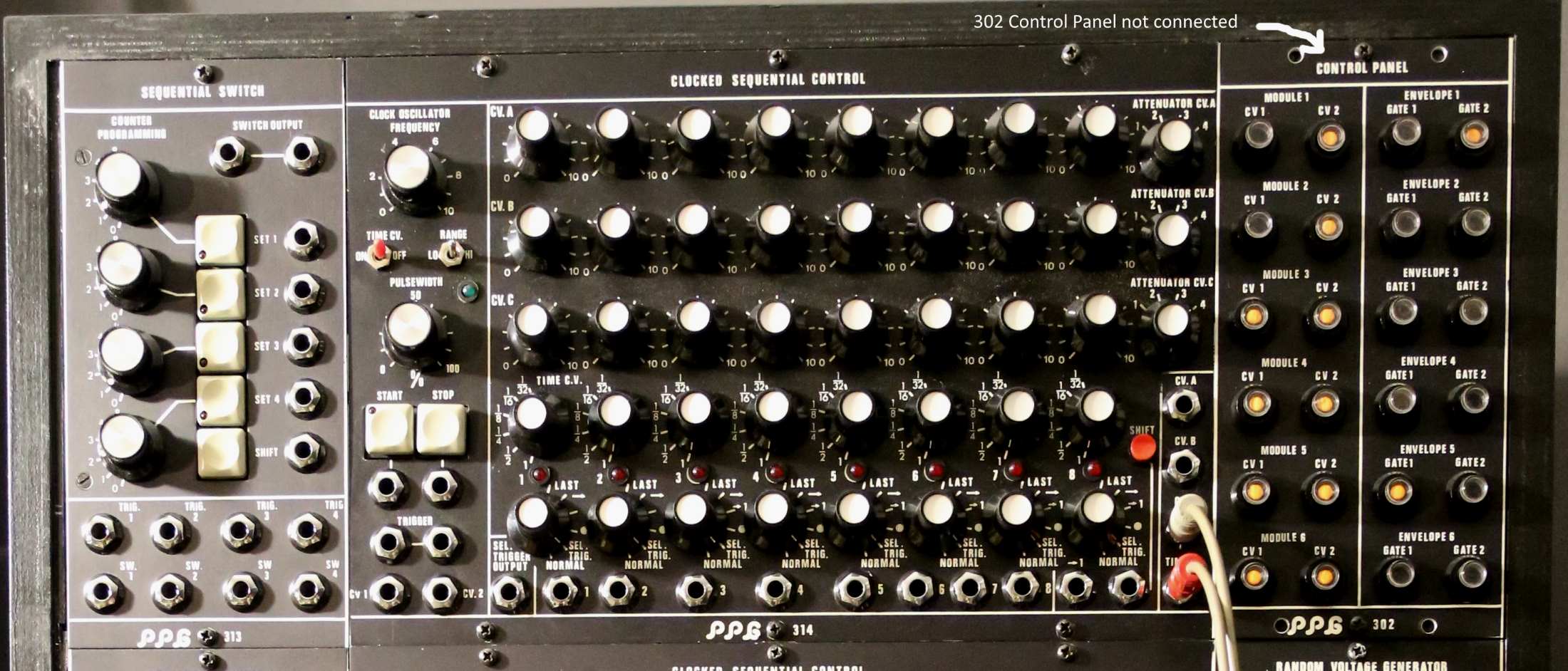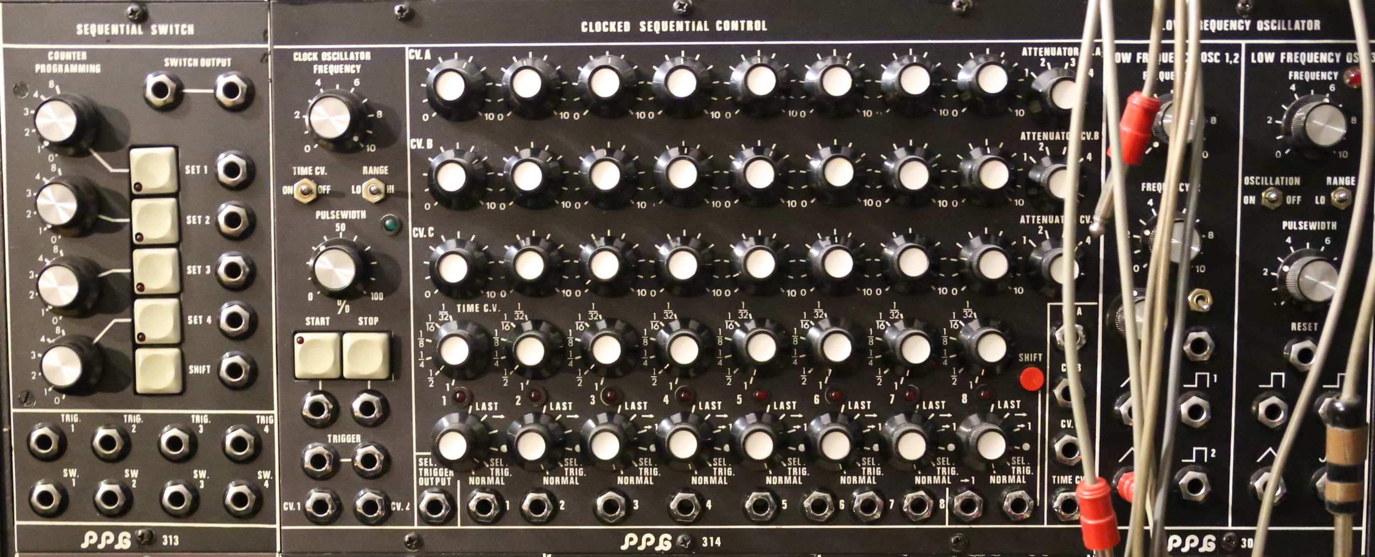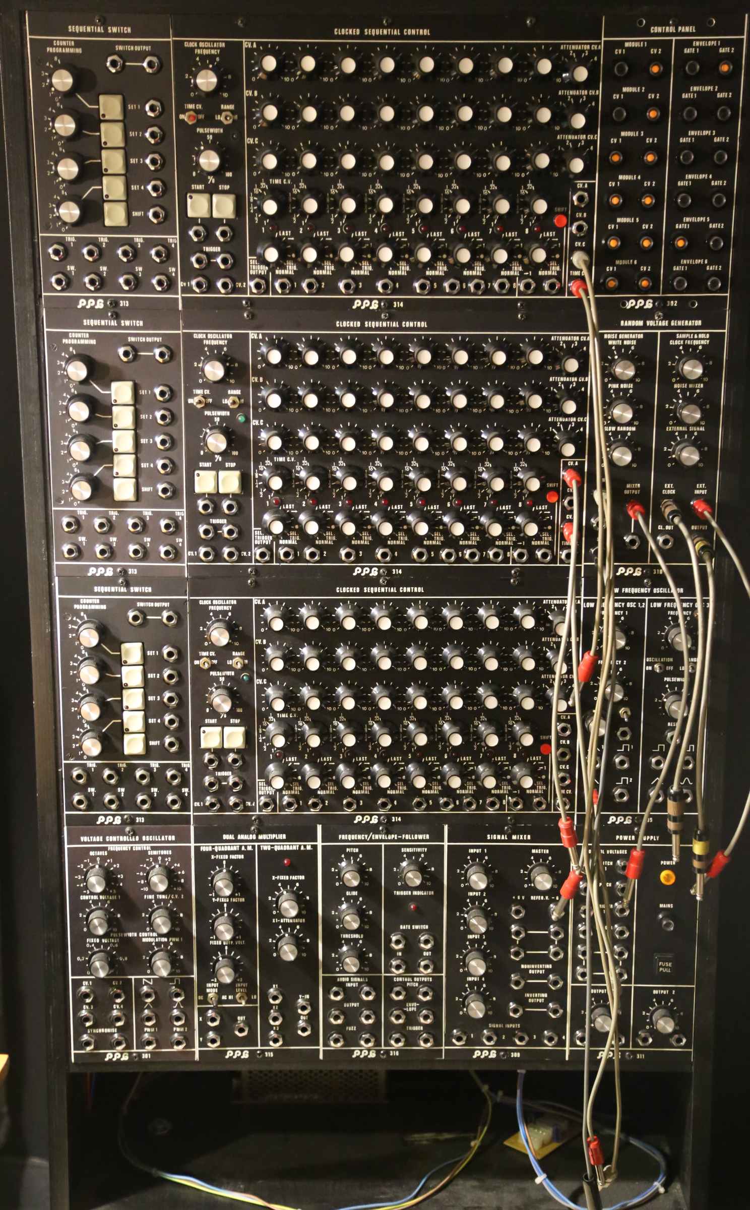 The second of these rare, beautiful PPG modular cabinets, this time concentrating mainly on sequencing, with no less than three fully-fledged sequencer complements. PPG 300 MODULAR WING #2 In black wooden housing. Perfect working modules*, two times restored, most jacks new, original switches, knobs, new power supply. Excellent cosmetic condition on front panel, no scratches. Patch cords NOT included! (*The 302 'control panel' module is not connected, as it came from a different system.)