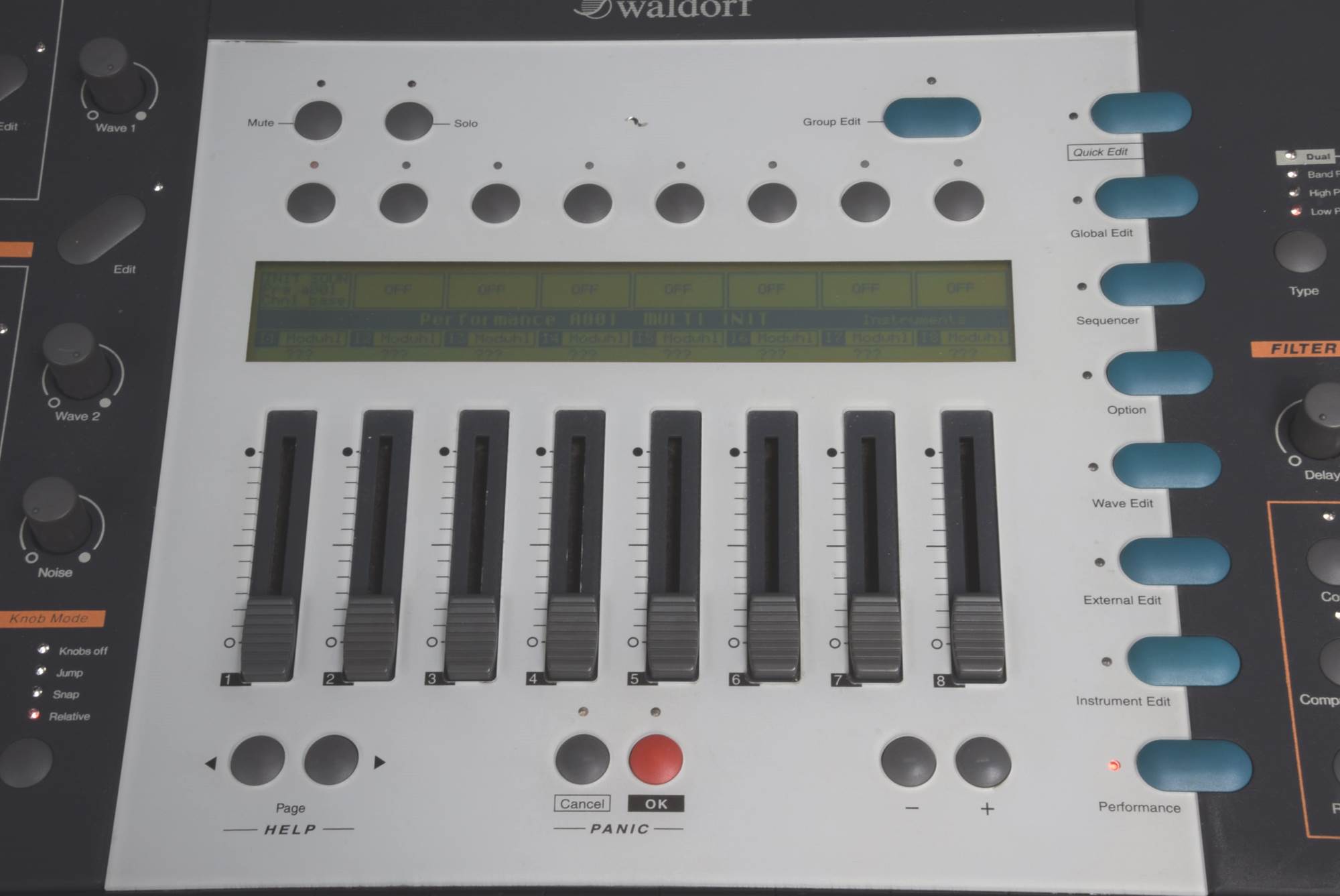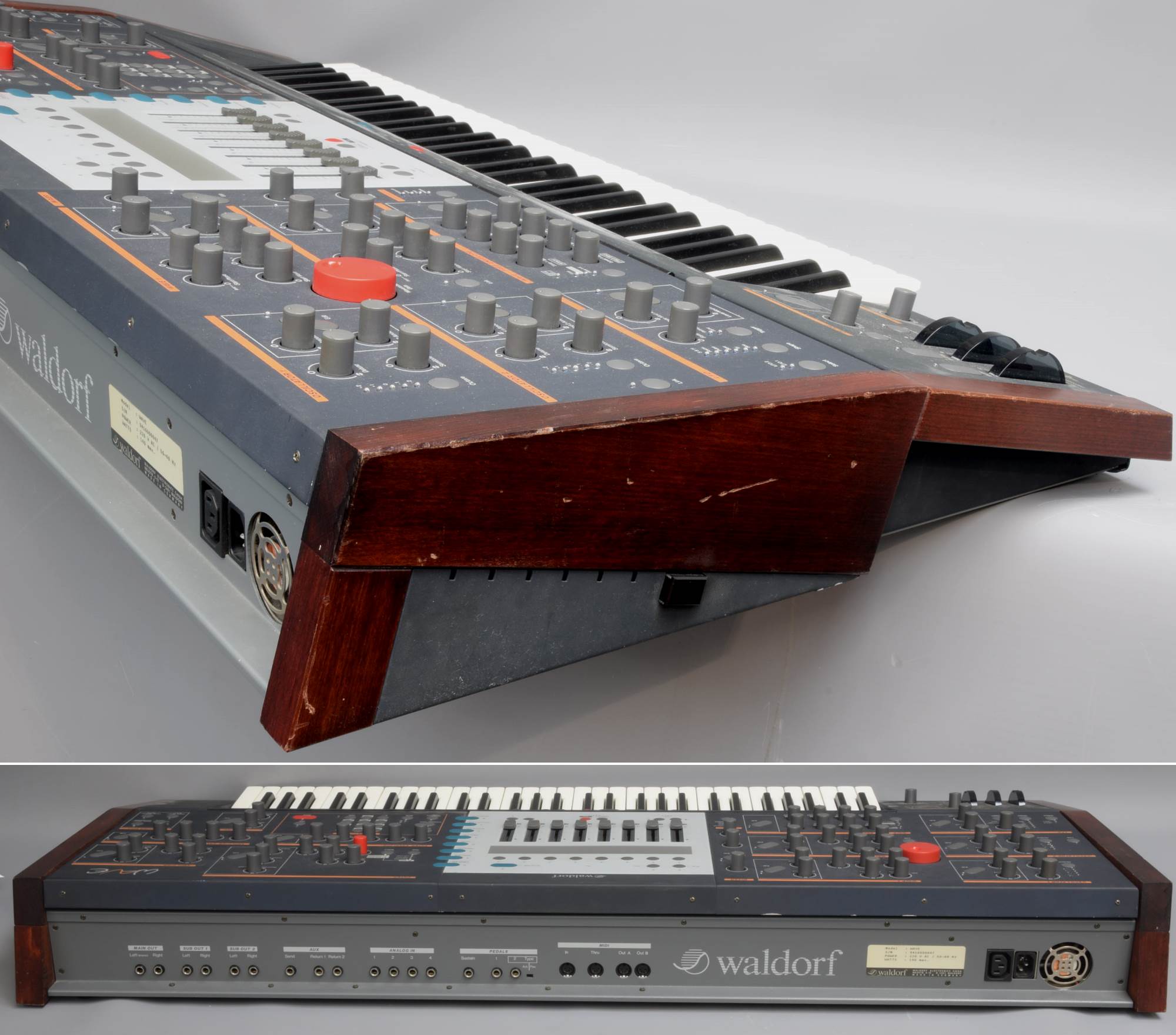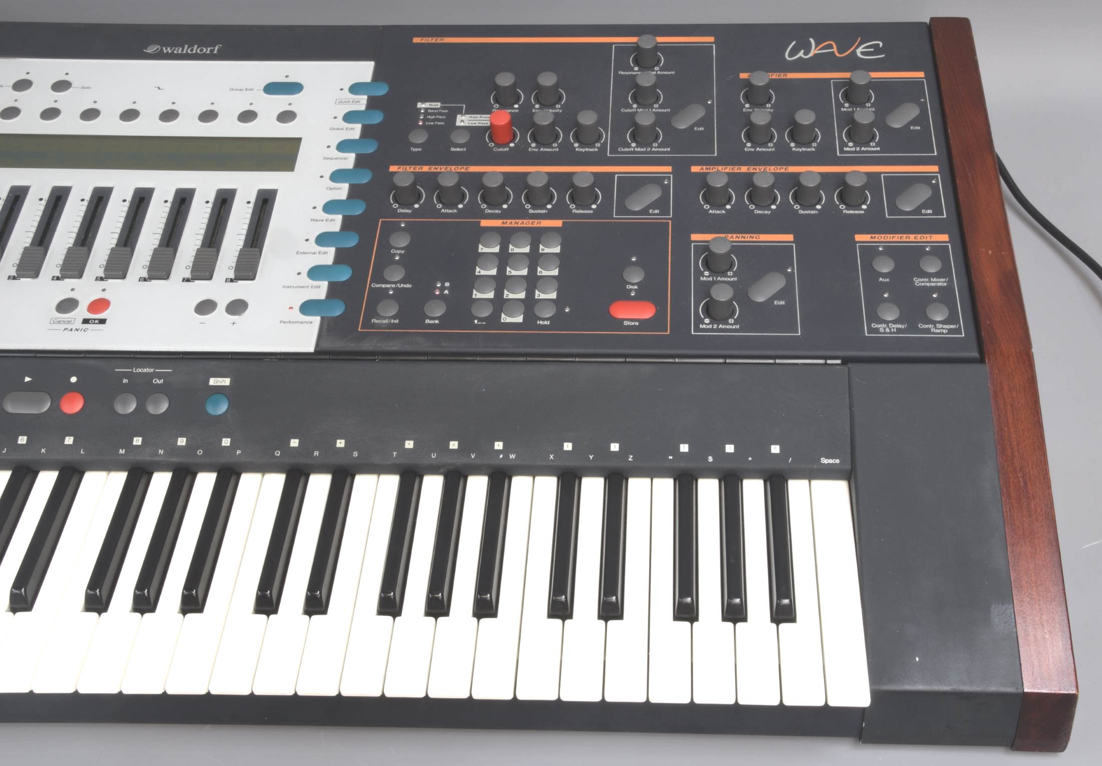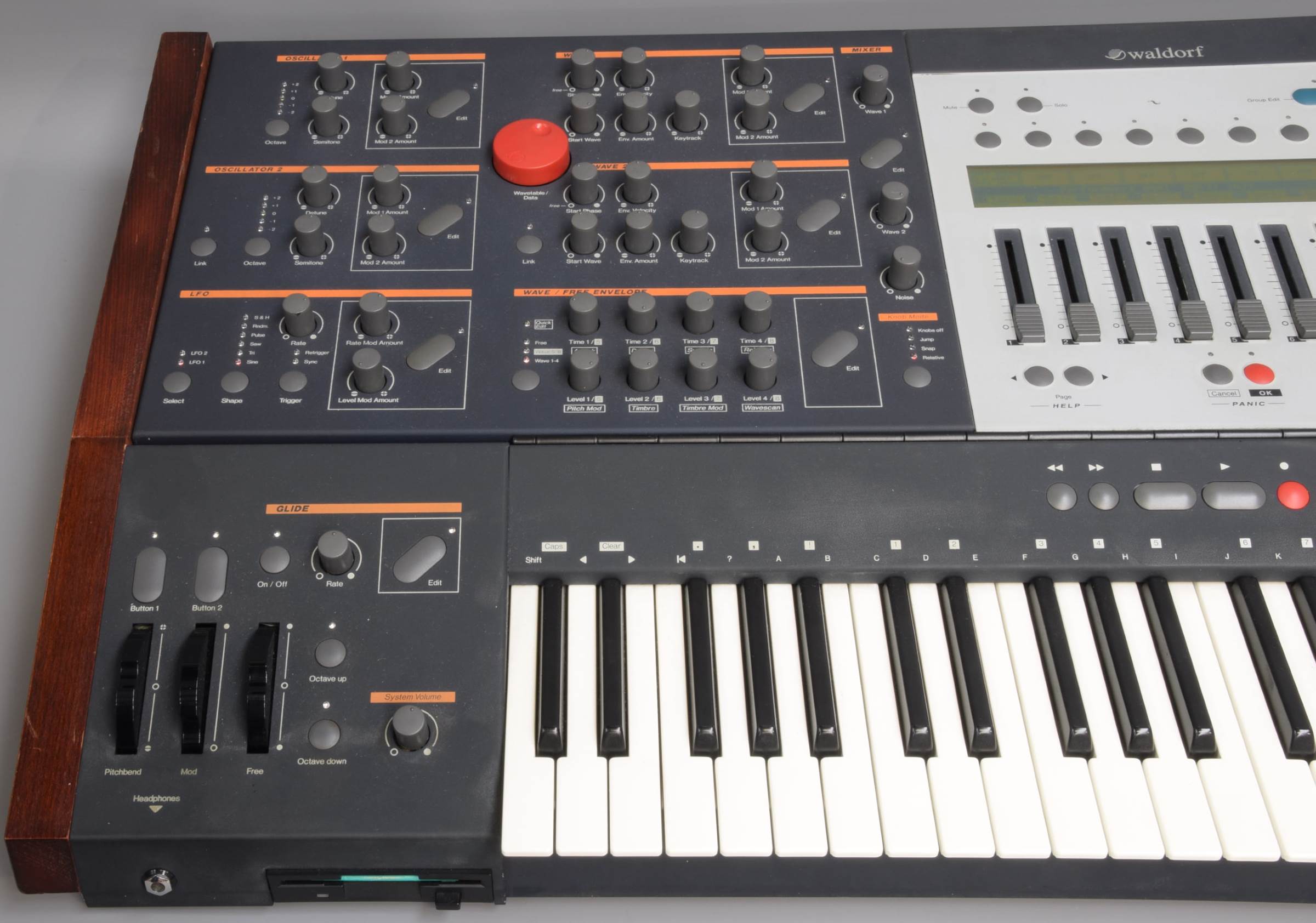 The Waldorf Wave ... so beautiful, iconic and rare. We took it to James Walker at Synth Repair Services - he was recommended as having recent knowledge of these intimidating machines by a (double!) Wave owner. Unfortunately James is under major pressure from a lot of sources at the moment and as of November 4 hasn't finished this work. The last report was that there is one filter which is not coming into line like it should. So it will have to be sold **AS IS **. Still a wonderful rare machine, highly collectable and worth finding another tech to finish the work on it. Now with new hydraulic struts. We will need to palletise the Wave if it needs couriering - 40GBP, refundable if not needed.