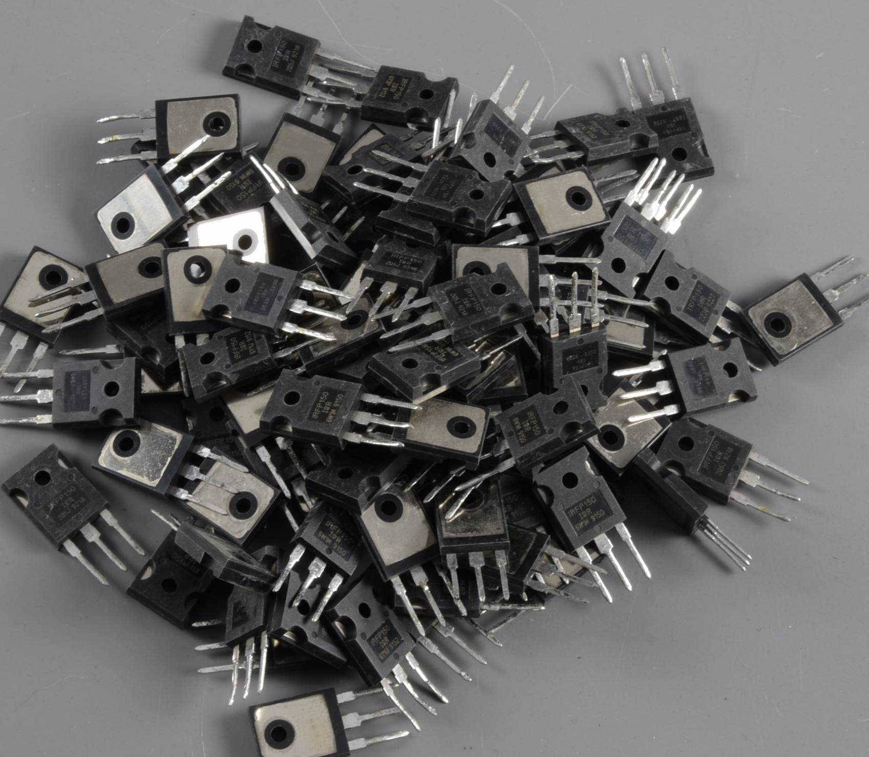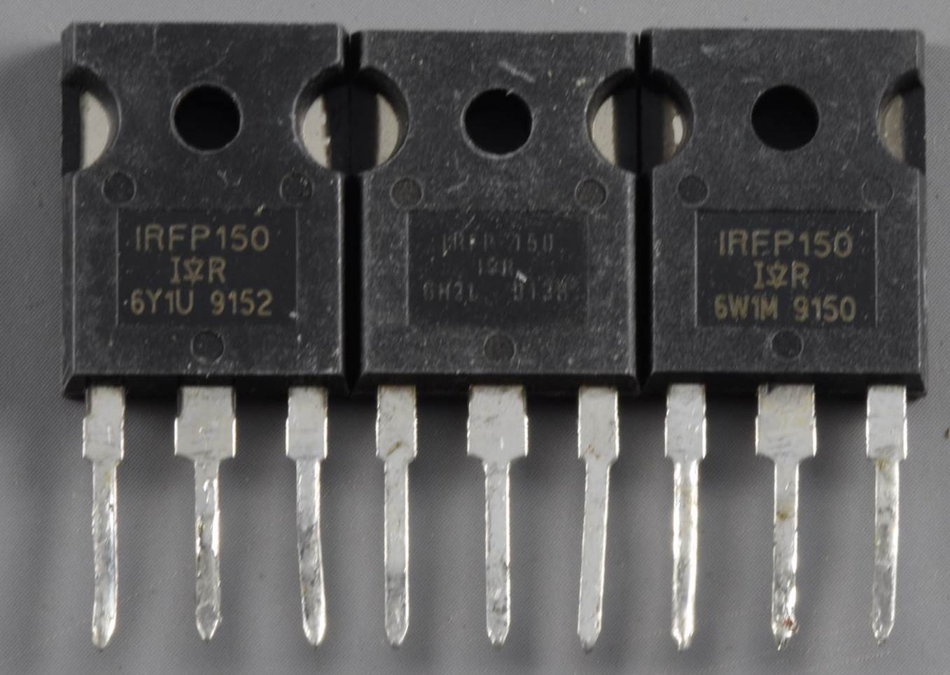 A hundred NOS IRFP150 MOSFET transistors. These have been jumbled togetehr in a bag for some time and when you look closely have marks to show that. They are non-ROHS. The RoHS Directive does not apply to spare parts for the repair, or reuse, of electrical and electronic equipment placed on the market before 1st July 2006. This is so that old equipment can be maintained with spare parts and to promote the reuse of old electrical and electronic equipment.