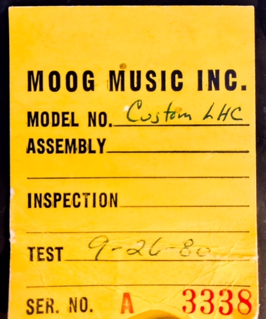 The original serial number and Moog “Custom LHC” tag is still attached to the bottom of the unit.