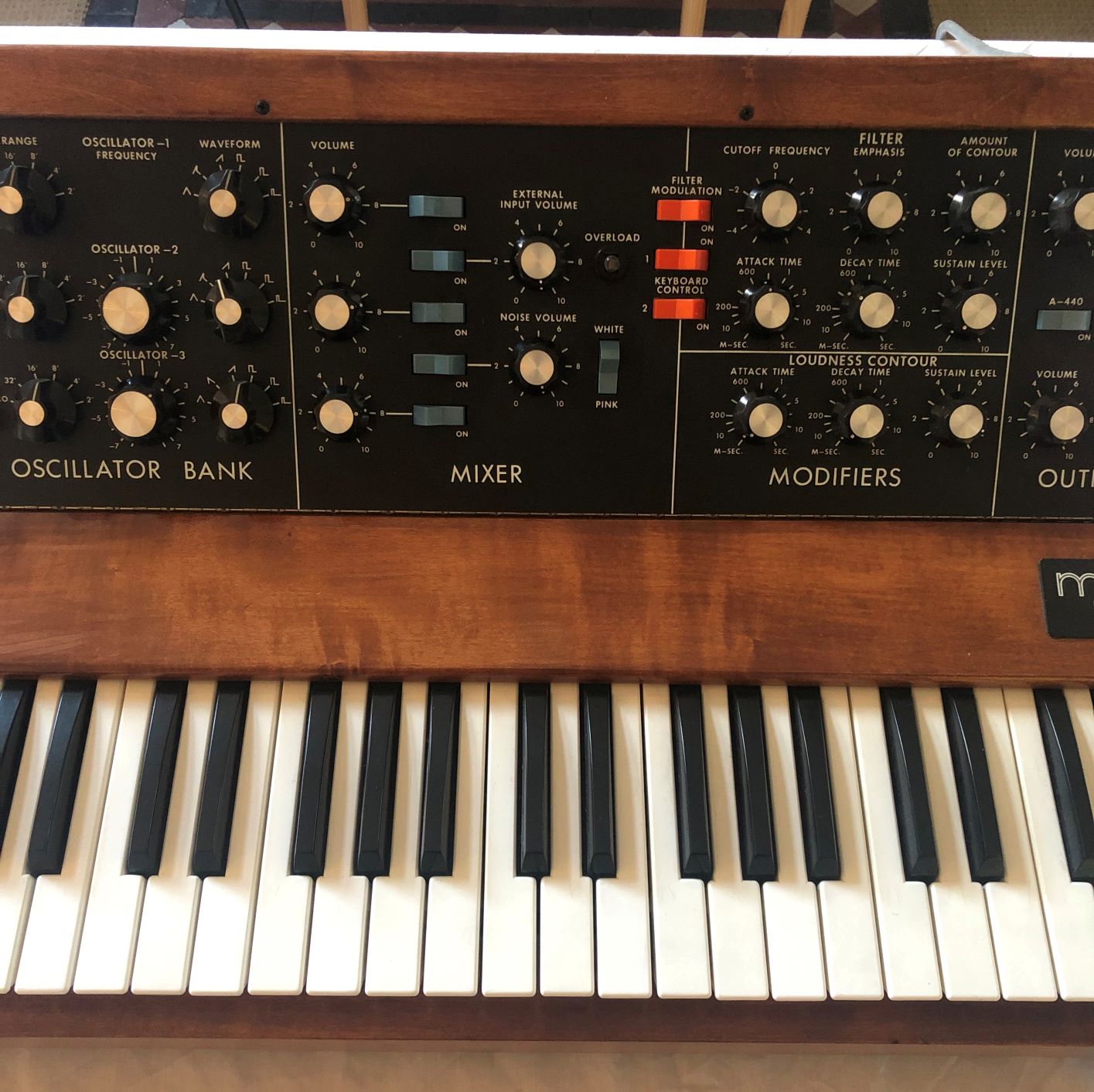 Stunning condition Minimoog Model D, Serial number 7933, woodwork looks better than new and this Mini is in excellent working order refurbished by www.analogia.pl a few years ago and has been working great ever since. |