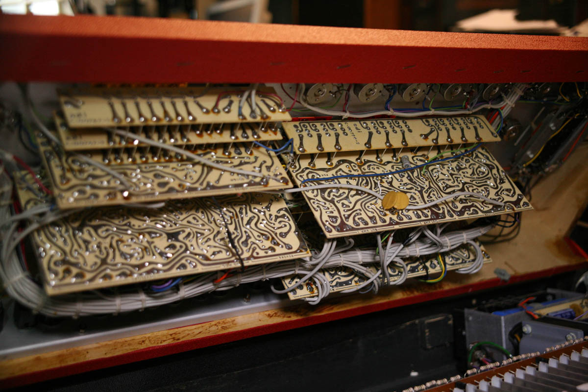 The ring modulator and one of the tremolo channels is not working. VCO tracking needs adjusting. Power supply was rebuilt in 2008.