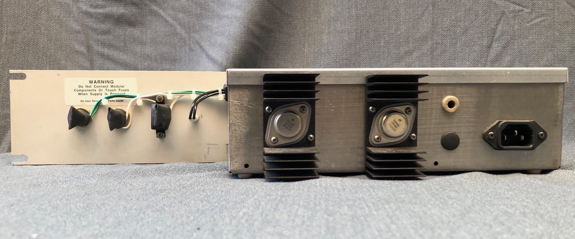 For sale are two racks for Moog modules,every rack can Hold 8 Moog units,included power supply with standard voltages +12,-6 and -10 for 901/901a oscillators,Also are included the cables harness for Powering a system 10/12 moog