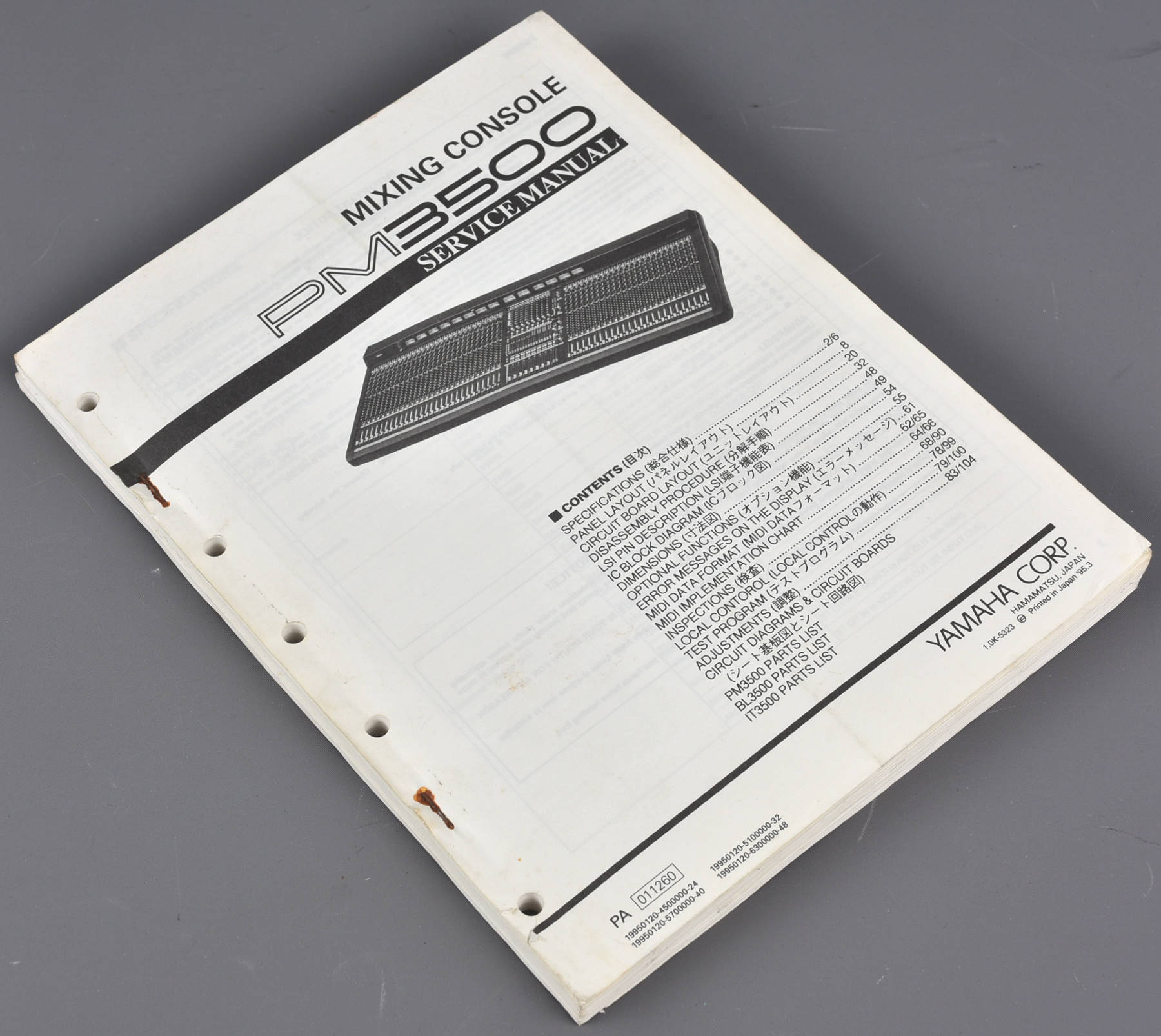 Massive (2lb - nearly 1kg) service manual for the Yamaha PM-3500 mixing console, full of fold-out schematics and literally hundreds of tightly packed pages of detail. This looks unused. Packing 3GBP. |