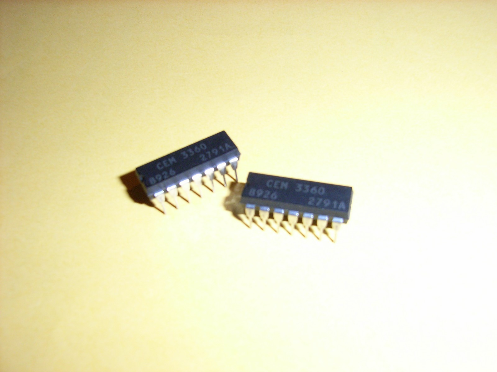 *** NOS : ORIGINAL CEM3320 / 3350 / 3360 / 3374 *** ___ one of each of the CEM3320 VCF P5, OBXa etc. CEM3350 VCF Chroma, Syrinx etc. CEM3360 VCA everywhere, CEM3374 VCO Xpander Matrix 12 etc. ___ (even if pict show two you get only one per part number) ___ ICs are very beautifull NOS from Curtis, not second hand, re-issue nor clone from Russia, China or wherever fake ___ The date code can be different from those of the photos ___ The shipment will be tracked & insured worldwide