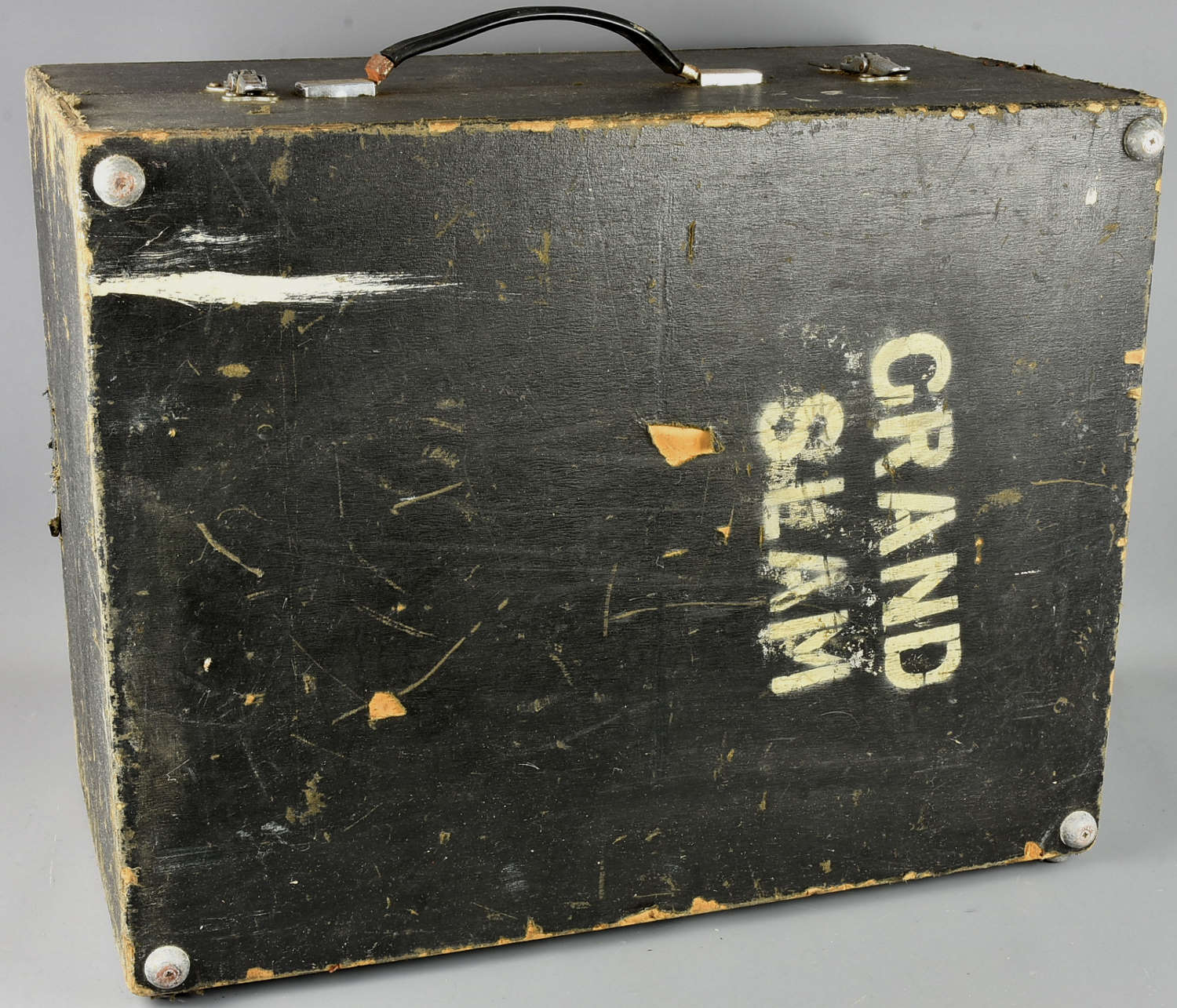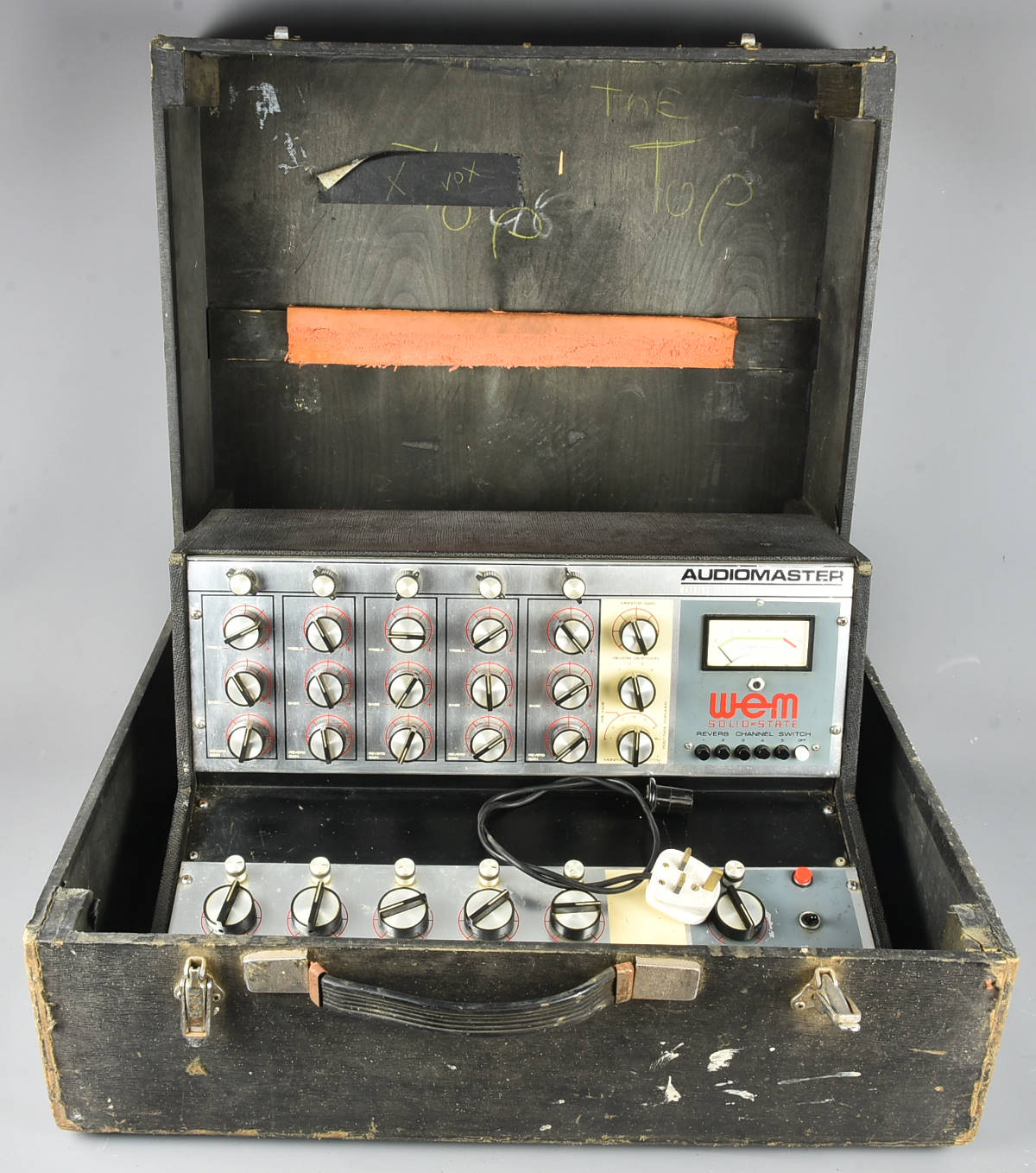 The case for a 1960s WEM Audiomaster mixer (like the one on the cover of Umma Gumma). It is probably a home-made case, dating from the 70s. The case is solid but pretty tatty. It was obviously gigged by a band called Grand Slam - not the Phil Linott band of the early 90s. Audiomaster not included! Packing (covering with strong card) 6GBP. |