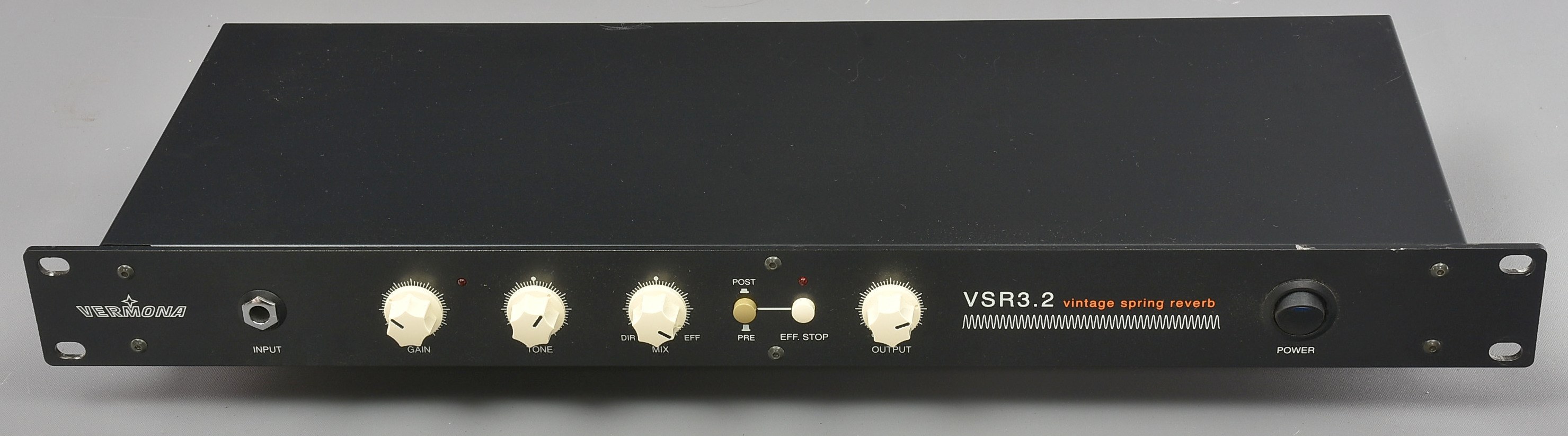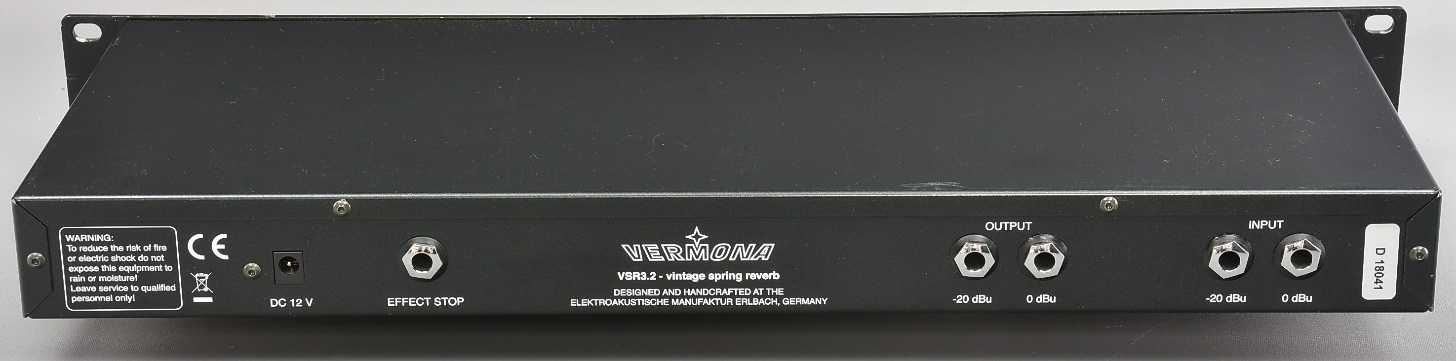 Super condition recent Vermona VSR3.2 spring reverb. At the moment there is no 12V power supply. Vermona specify DC 12V 1000mA - it can be either polarity. ***VAT has to be paid in UK.*** Packing 6GBP. |
