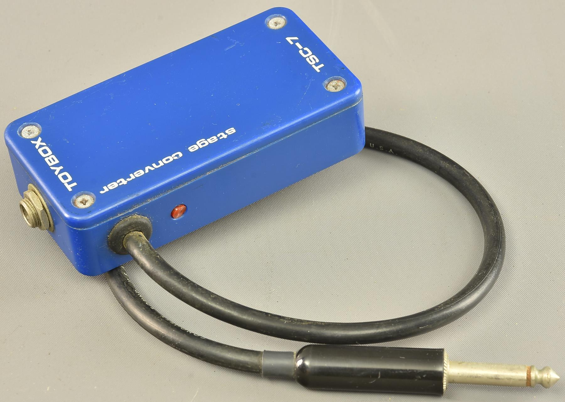 Toybox TSC-7 Stage Converter: belt-worn buffer / hi-to-lo impedance converter to maintain guitar tone even with a long cable. From Genesis' rig but no written provenance. Packing 2GBP. |