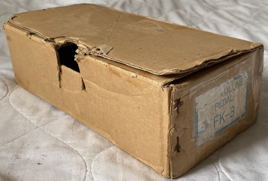 In generally very good condition, with the protective plastic over the controls. The box is quite tatty, but contains the pedal as it should and has kept it safe. Now at VEMIA. We will cover it with card to keep it in the same condition in transit: 3GBP.