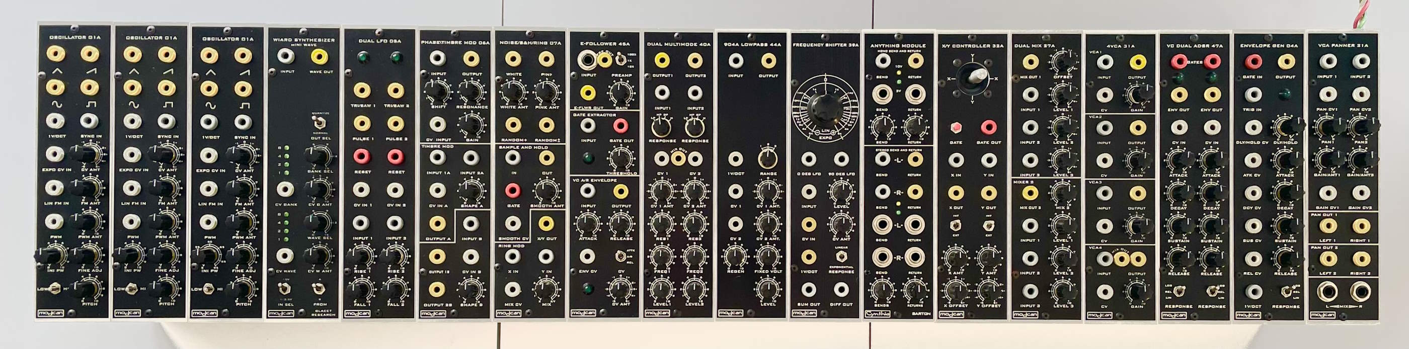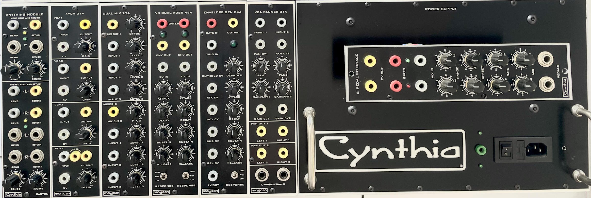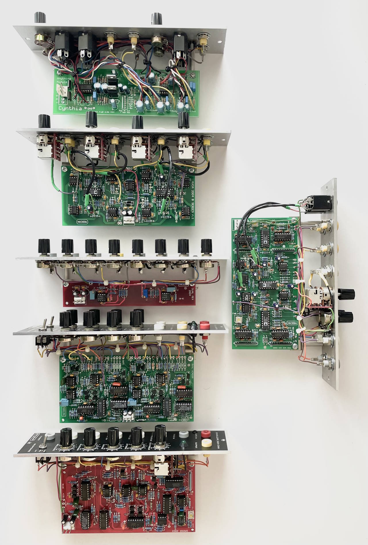 Great original Modcan system: 18 modules in three sixpacks with Cynthia power supply plus bipedal interface + Error Instruments Banana/Eurorack converter + Pomona cables.