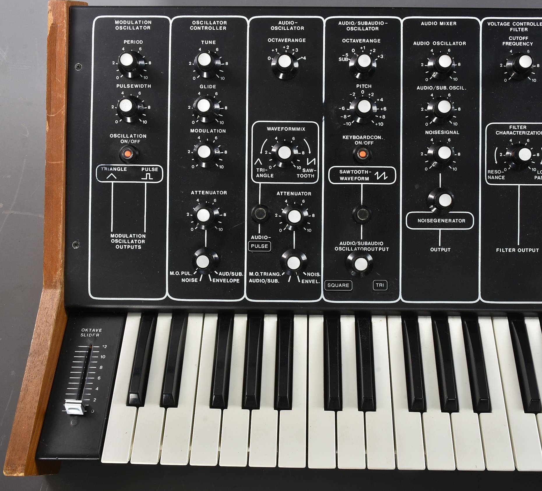 One of the very rarest synths of all time, made in 1976 in very small numbers by Wolfgang Palm and colleagues. Even rarer to find one in excellent working order, which this one is, thanks to Lucid servicing it in the last two months. Because of the tiny production run and/or the early days of synthesis, it looks like some of these had slight variations to their interfacing - either added by the new owners or perhaps even made to special order.