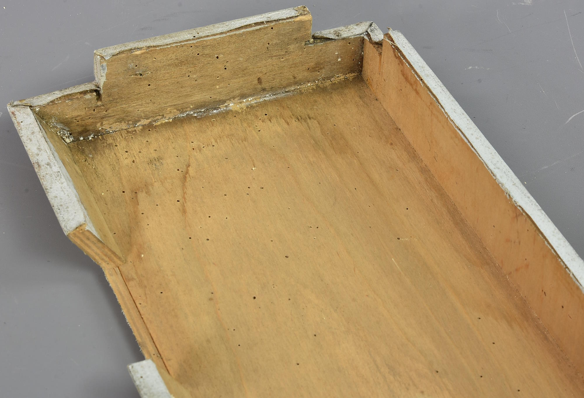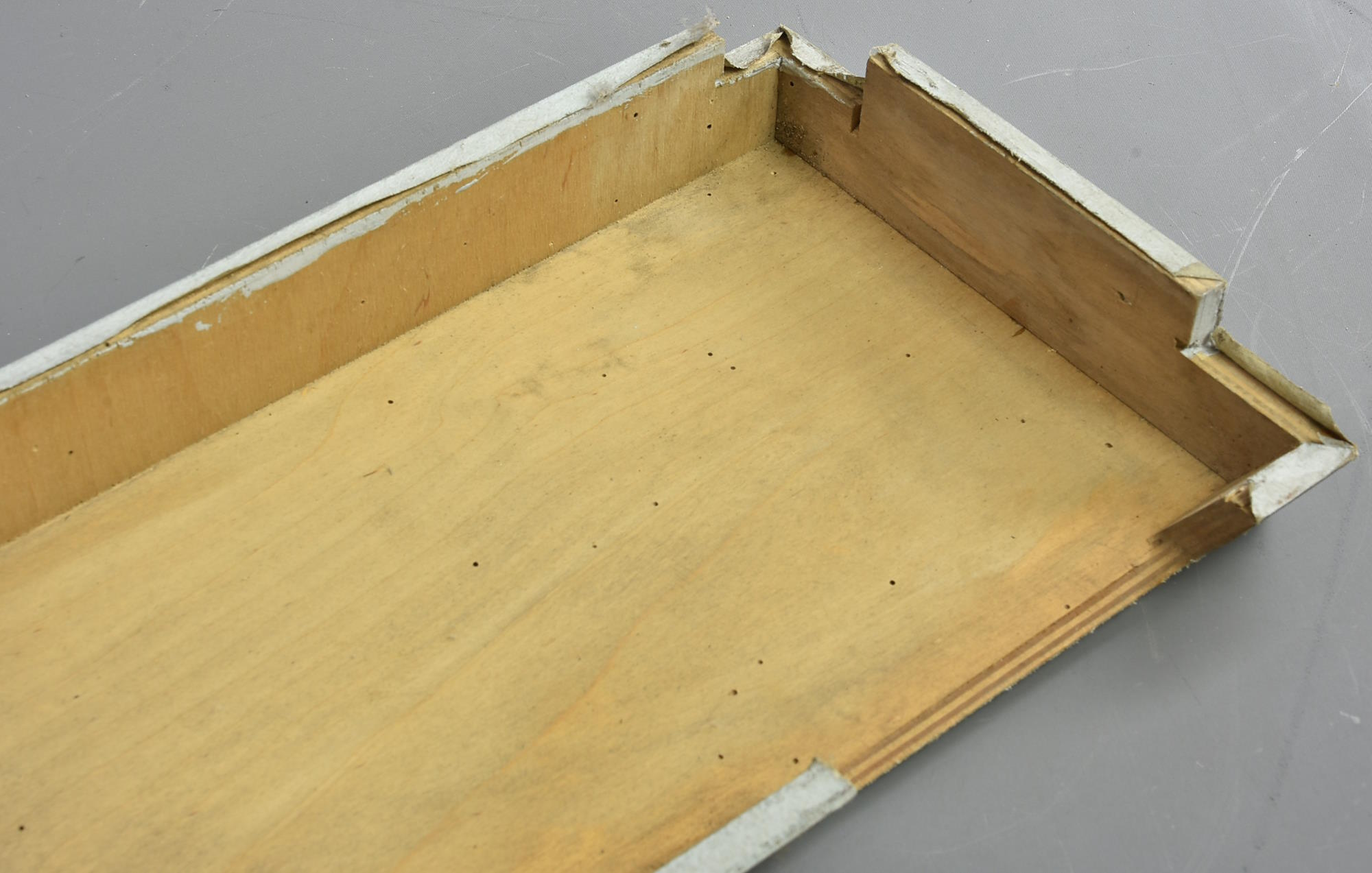 Blue - grey lid from a Vox Continental 300 early version. Missing its front plate, and with the material needing re-sticking under the edges. Plus a lot of woodworm holes - but no sign of any recent activity, so not believed live or dormant. Packing 6GBP. |