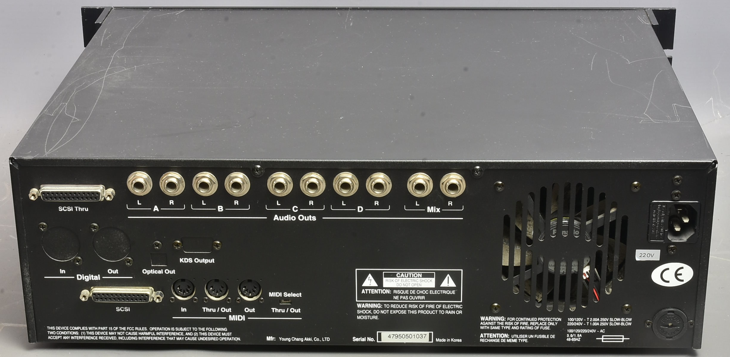One of Kurzweil's finest products, still relevant and producing great sounds after nearly 30 years. This one is badged RS but doesn't have the sampler in/outs. It comes from Paddy Kingsland (Radiophonic Workshop) and is in good condition. The best thing: it includes the optional Stereo Piano, Contemporary and Orchestral ROMs, with their reference guides - as well as the massive K2500 series Performance Guide. These are very difficult to get hold of, individually - and having all three installed is a huge bonus. Please check the photos for what else is or is not included. Packing 12GBP to include a UK or Euro mains lead. |