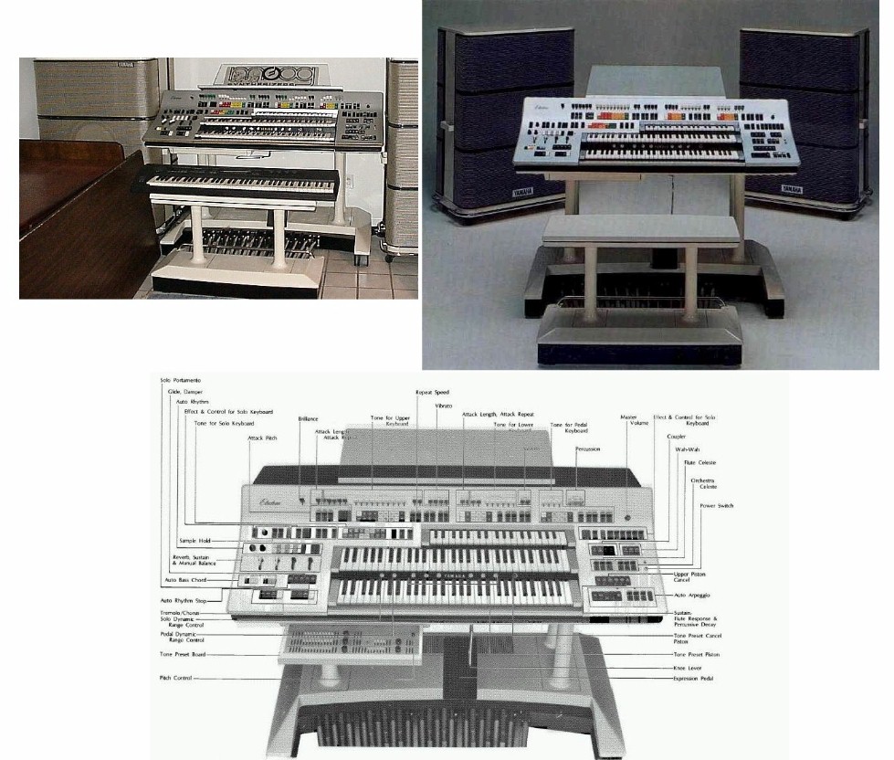 Built-in arpeggiator and (primitive) drum machine, effects, knee-lever control, night-lighting system, auto-pitch bend, wah-wah pedal, reset Tones setting board, Sample & Hold with Synchro Auto-Rhythm and Auto Bass/Chord, headphone and Leslie speaker cabinet outputs, and much much more.