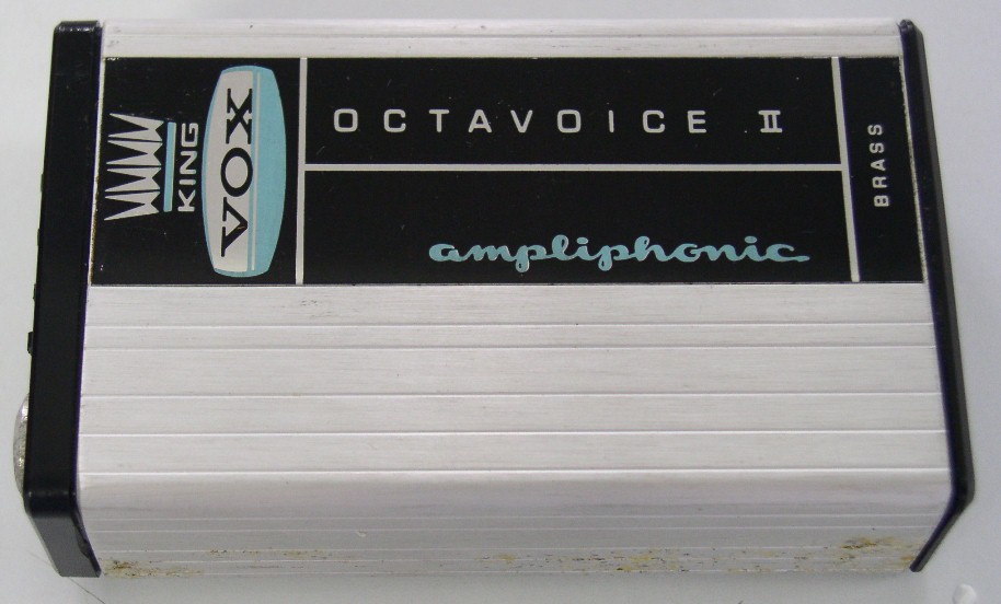 Old and rare preamplifier / octave divider effects unit for Brass instruments. Provides preamplification, Bright switch, and 'Trombone' and 'Tuba' suboctave switches. 1/8-inch mini jack instrument input, 1/4-inch phone jack output. Uses a 9V battery.