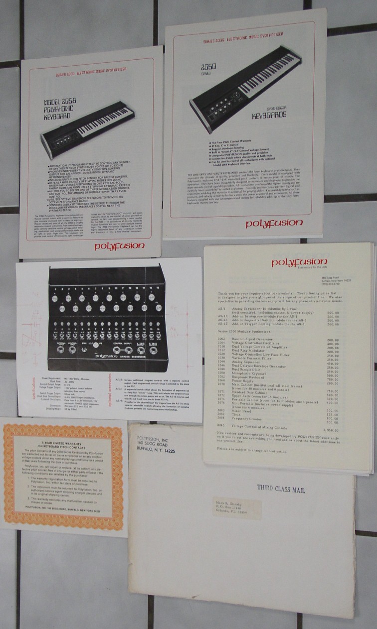 Polyfusion Modular Synthesizer original brochures / promo sheets (in original mailing envelope 6/78)