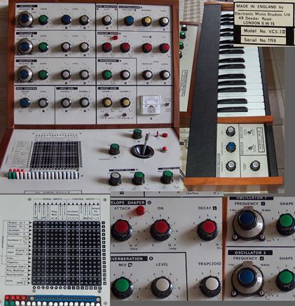 A beautiful VCS3 mk II with its DK2 keyboard. All working excellently, and in lovely cosmetic condition. The silk-screening is a bit worn in some places - probably from cleaning by the previous owner before I bought it in about 1986 - but see the photo. It is still a wonderful example of a wonderful instrument.