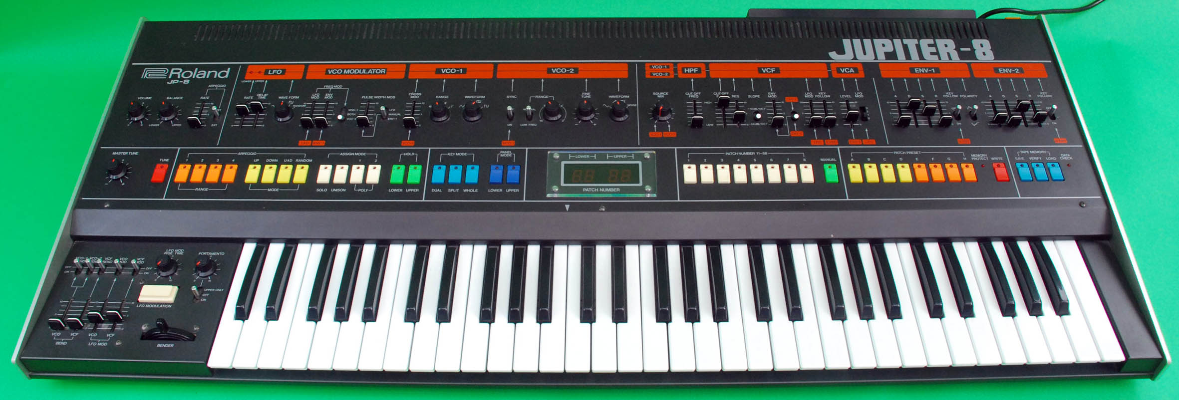 This is actually an early JP-8, which theoretically should have slightly inferior tuning, but sounds wonderful - rich, precise, smooth, huge, glistening - whatever you want.
