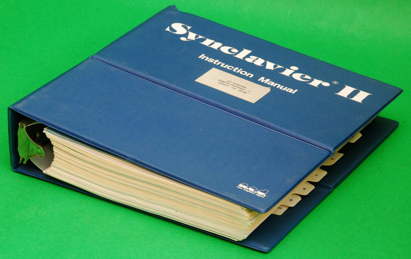 Fascinating reading: the mammoth original instruction manual for the NED Synclavier II. Original owner Ed Starink - whose sticker is on the front cover. Complete, and in very good condition except for a little kink at the top left of the cover - visible in the photo. This is an old photo but the manual has been wrapped up since. Hundreds of pages - you can tell by the weight of 2.6kg just what a monster this is! Packing £3. |