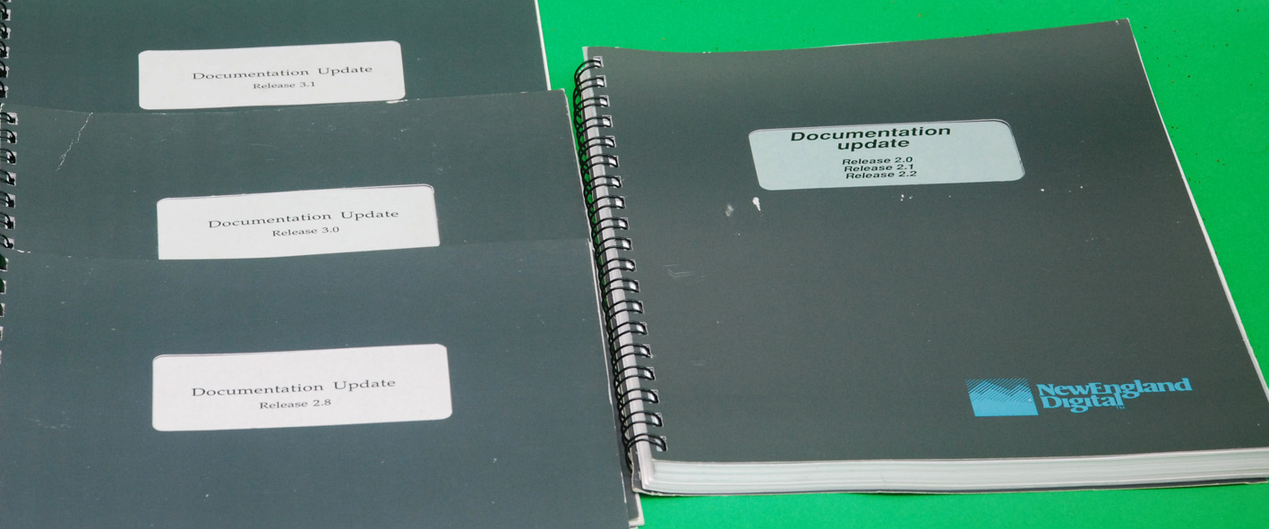 Original documentation for the Synclavier release 2.0, 2.1, 2.2, 2.8, 3.0, 3.1. From Ed Starink - duplicates of the documentation for his Synclavier 3200. |