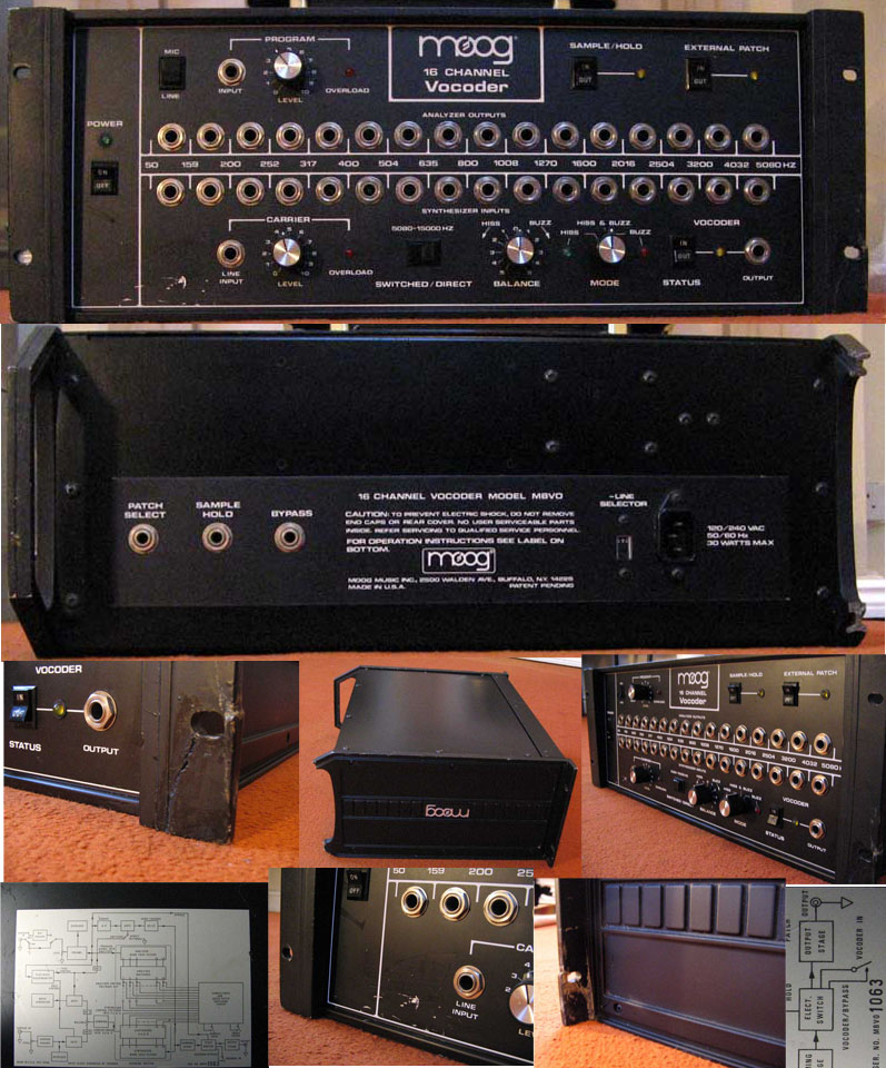 The pics should show the damage to the rack ear on the right hand side (someone has glued it back on and painted over the crack). It seems to hold but I haven't racked it up. The other ear is missing the handle and as seen from the moog logo looks like it is a right hand panel on the left hand side.' These side panels were a clever design which was interchangeable, so maybe spares are still available. There is some scratching to the bottom left of the front panel - see pic - but otherwise the front panel is much much better than the sides! Copy manual can be included. |