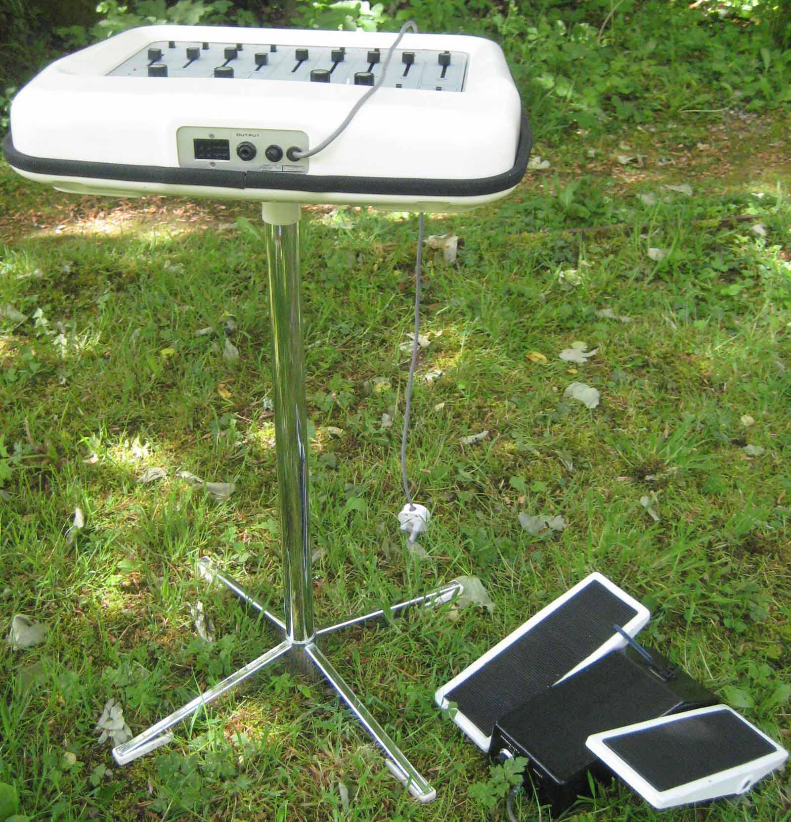 A rare early Synthi Hifli with original stand and early series chunky nylon-dipped pedals in beautiful condition.