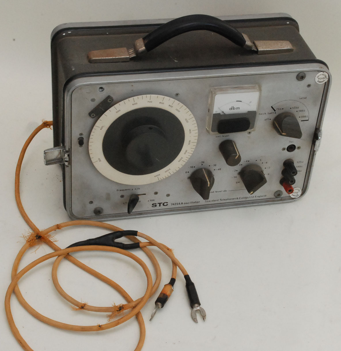 Three vintage oscillators, very solid, presumably from the late 60s - transistor not tube. These work from batteries or an external power supply - two of them actually have flying leads for that purpose. The leads are in average condition.