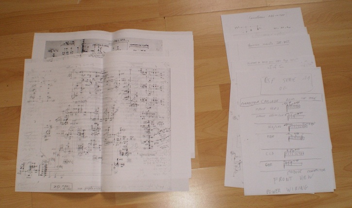The rest of the modules are in working order but need attention, soldering points need to be refreshed, as sometimes it's functional and sometimes not. Some inputs and outputs need to be wired. There are also lots of papers (A3 format) with schematics and description on functions, how to wire each module for power. The system has multiples divided into 4x6 and 4x5. Extra are 2 VCO pcb's and a Phaser model 12 pcb, and a sub-module for the VCF. Note that the VCF's, VCA's and VCP's use these sub-modules - without these you have a non-functional module. New pictures have been added. System requires 220V. |