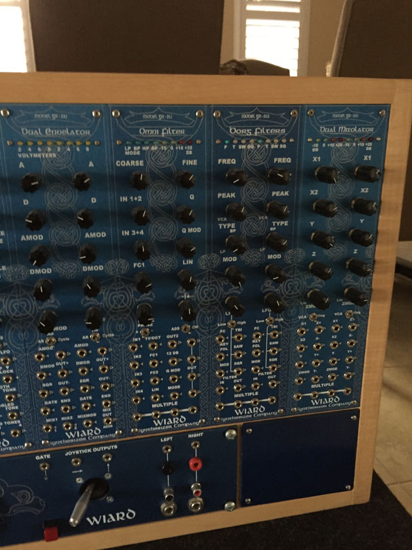 This is a customized Wiard 300 series 10-module system with controller, built by Grant Richter himself, 2nd-gen (w/I/O jack label triangles).