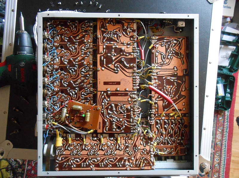 This unit here is serial number 003 so it seems safe to assume it was fairly early in the production run. At some point in its life, it was professionally modified with symmetrical inputs and outputs for instruments and microphones, using transducers by Sennheiser. All the modifications were thoroughly documented and can be serviced or reverse-engineered easily.