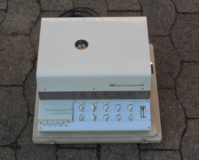 Mechanically, all functions work. The rubber on the idler wheel is a bit stiff which makes the unit a bit noisy but it still works very well and the echo rate is reasonably stable. The original two-prong power cord has got lost and was replaced by an improvised (but electrically safe) cable in order to retain the original state of the unit. Maybe you have one of those ancient Dynacord/Echolette cables lying about somewhere.
