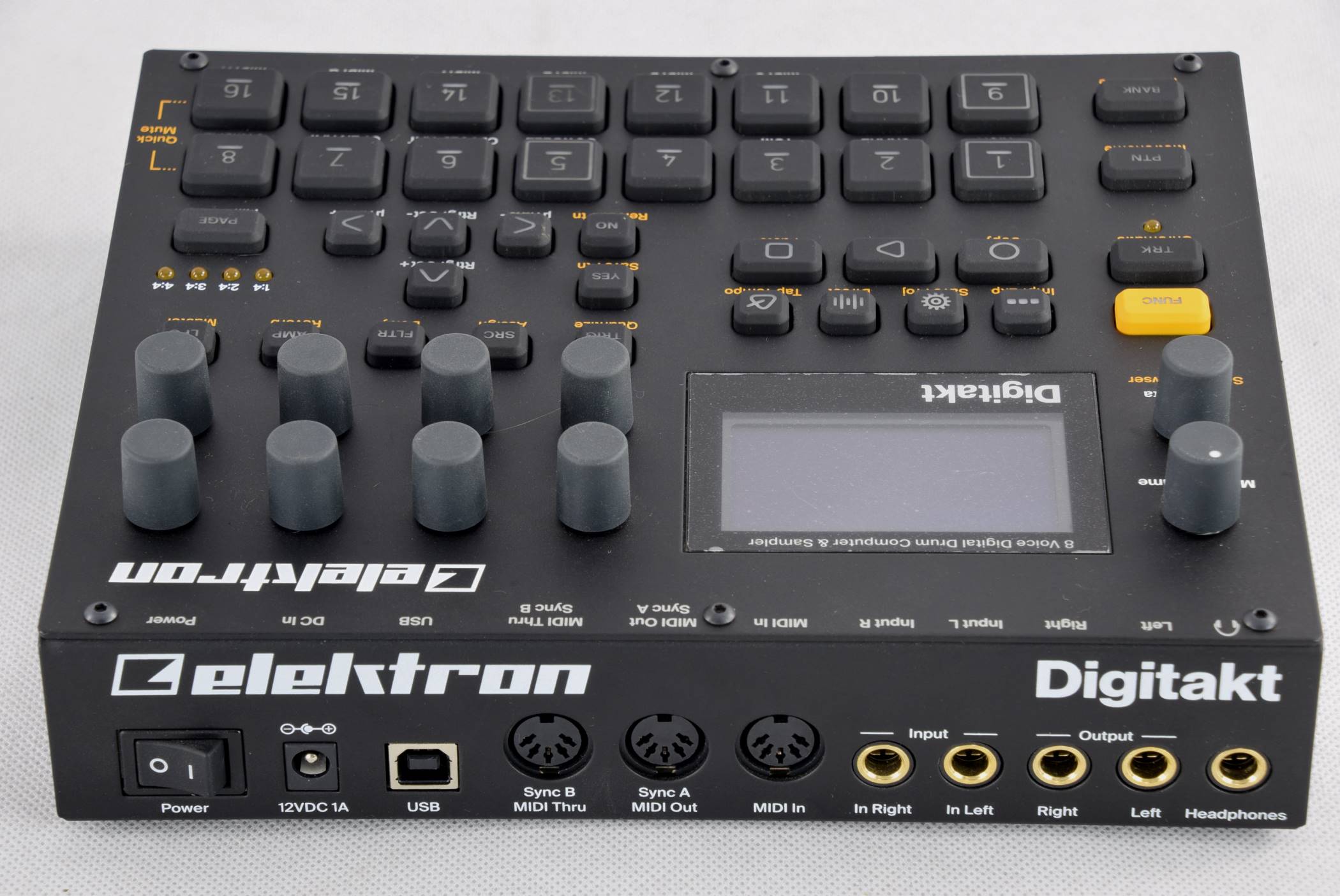 https://www.elektron.se/products/digitakt/ and https://www.soundonsound.com/reviews/elektron-digitakt . Boxed with manual and external IEC socketed power supply - currently UK IEC lead easily changed for Euro. We'll cover the box in card: 2GBP. |