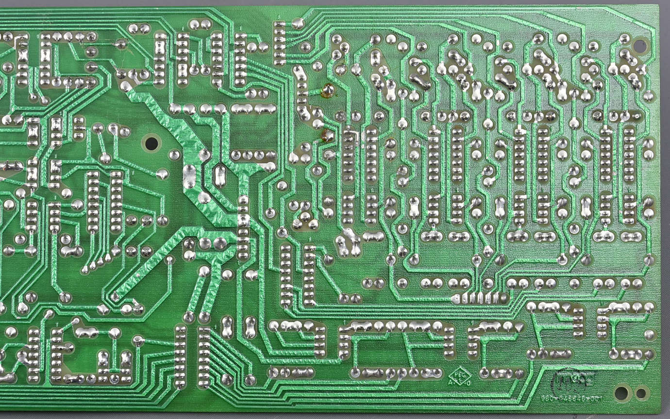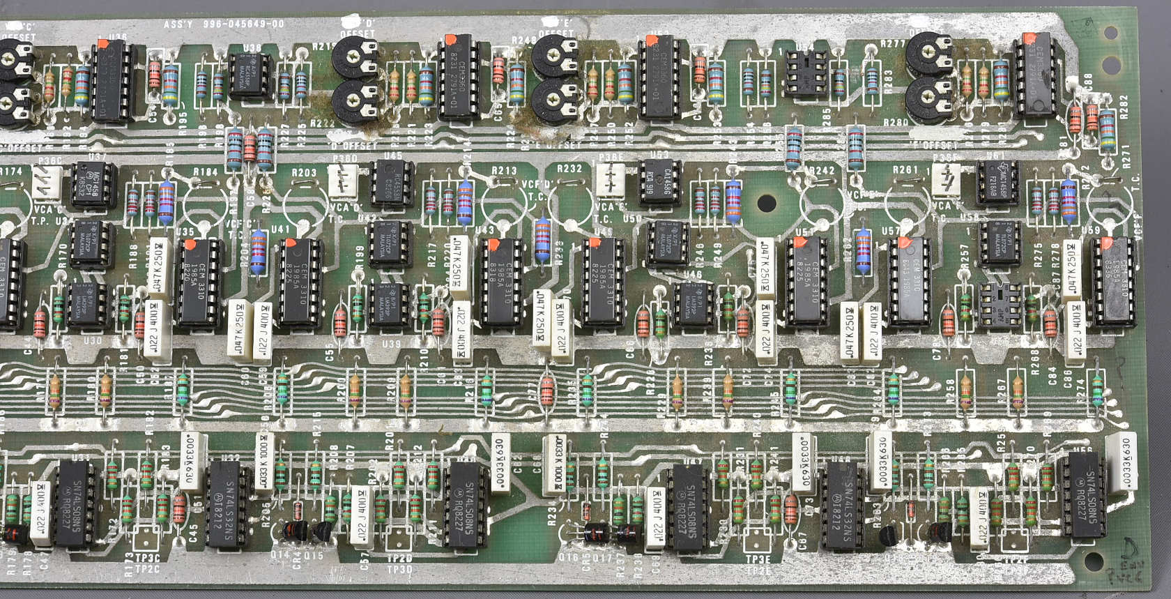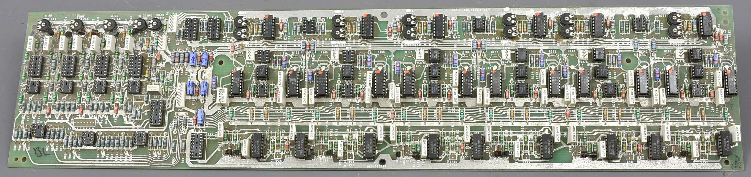 A second very important Memorymoog board, 980-045648 / 996-045649 Contour/Glide board (including the whole envelope generators) looking in good condition, but obviously sold as seen. Missing 20 chips mainly from the left hand (glide?) end of the board, but still including TWELVE CEM3310 envelopes and SIX CEM3360 Dual VCAs. Not an easy thing to pack safely: 8GBP. |