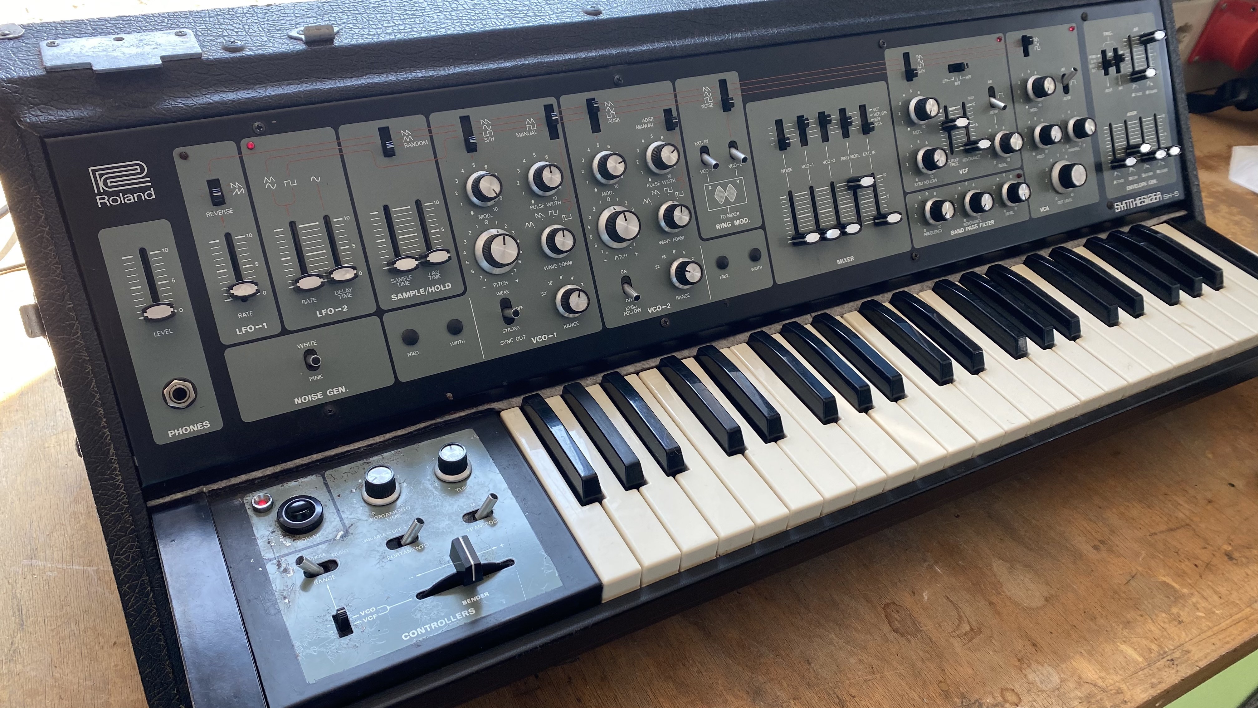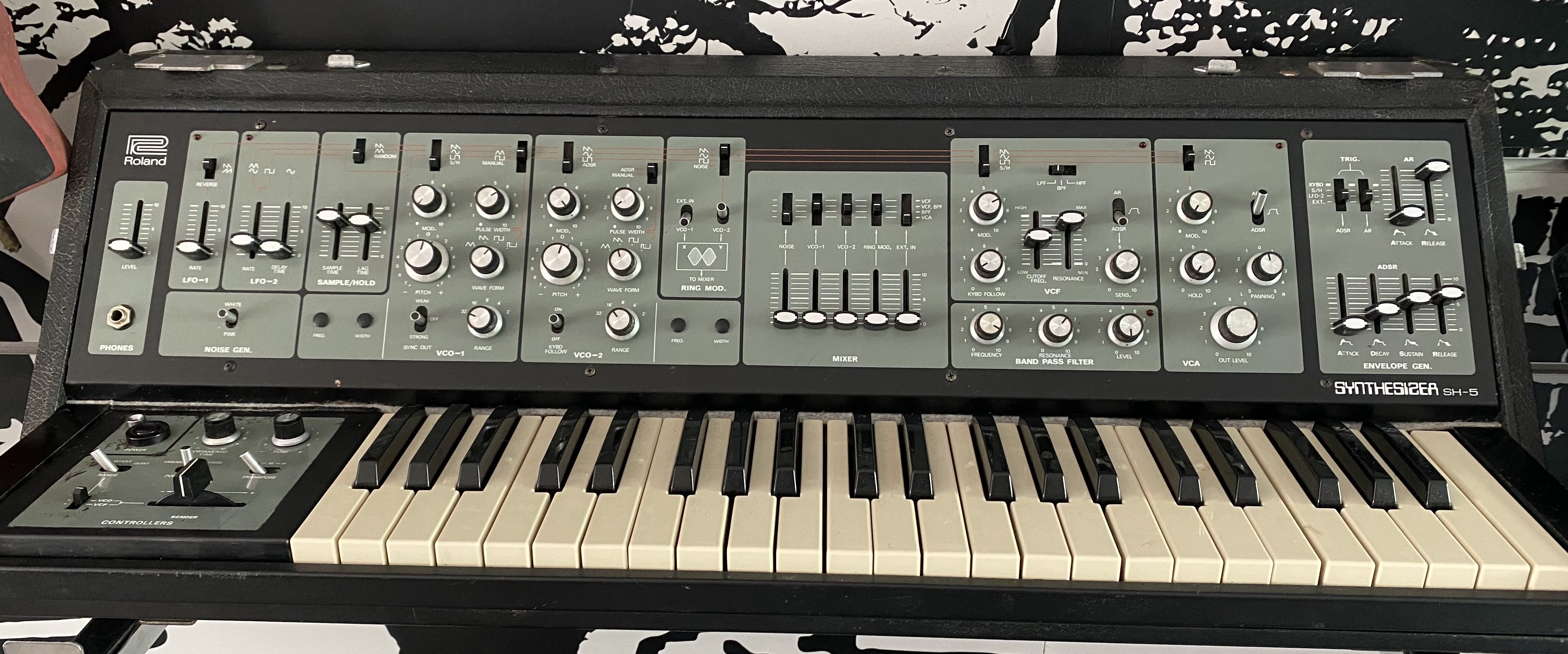 ROLAND SH5 with all new hi-temperature Panasonic Caps, fully calibrated and in marvellous sounding condition. I have never heard anything like this before. The Looks are fine except the bender board. Unfortunately the case cover is missing.
