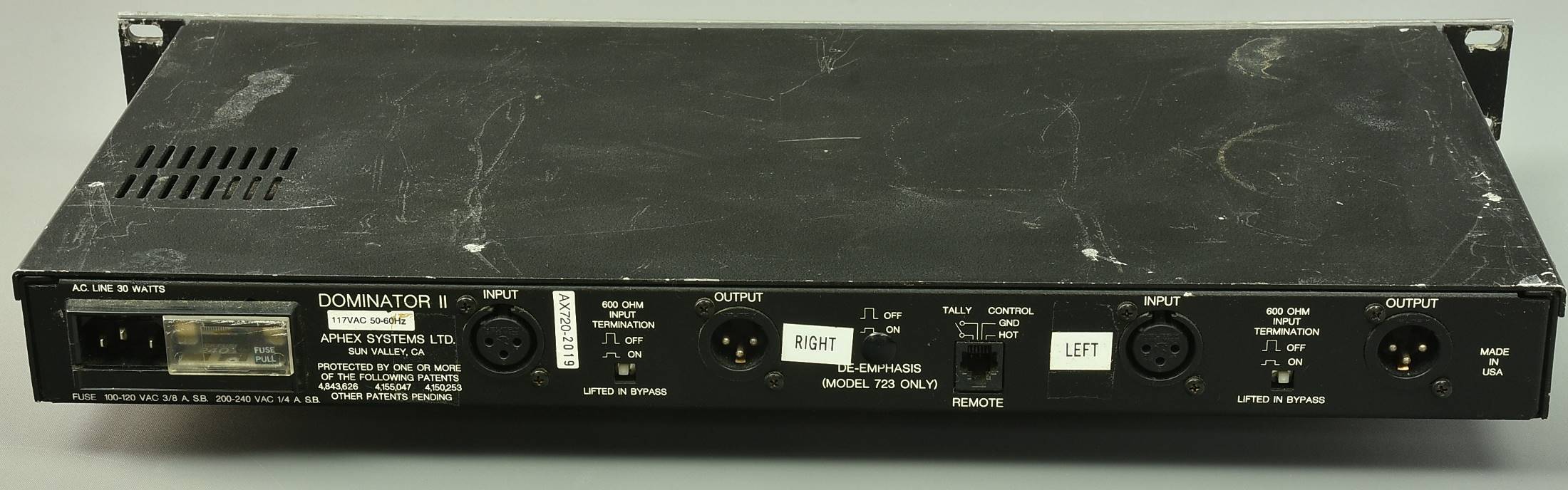 From Genesis' gear locker, so sold without guarantee, but believed fine. Model 720: the stereo version of this compressor-limiter. Label says 117V, but believed UK voltage like all the rest of the Genesis gear. Switchable anyway - and you'll need an IEC lead. Packing 9GBP. |