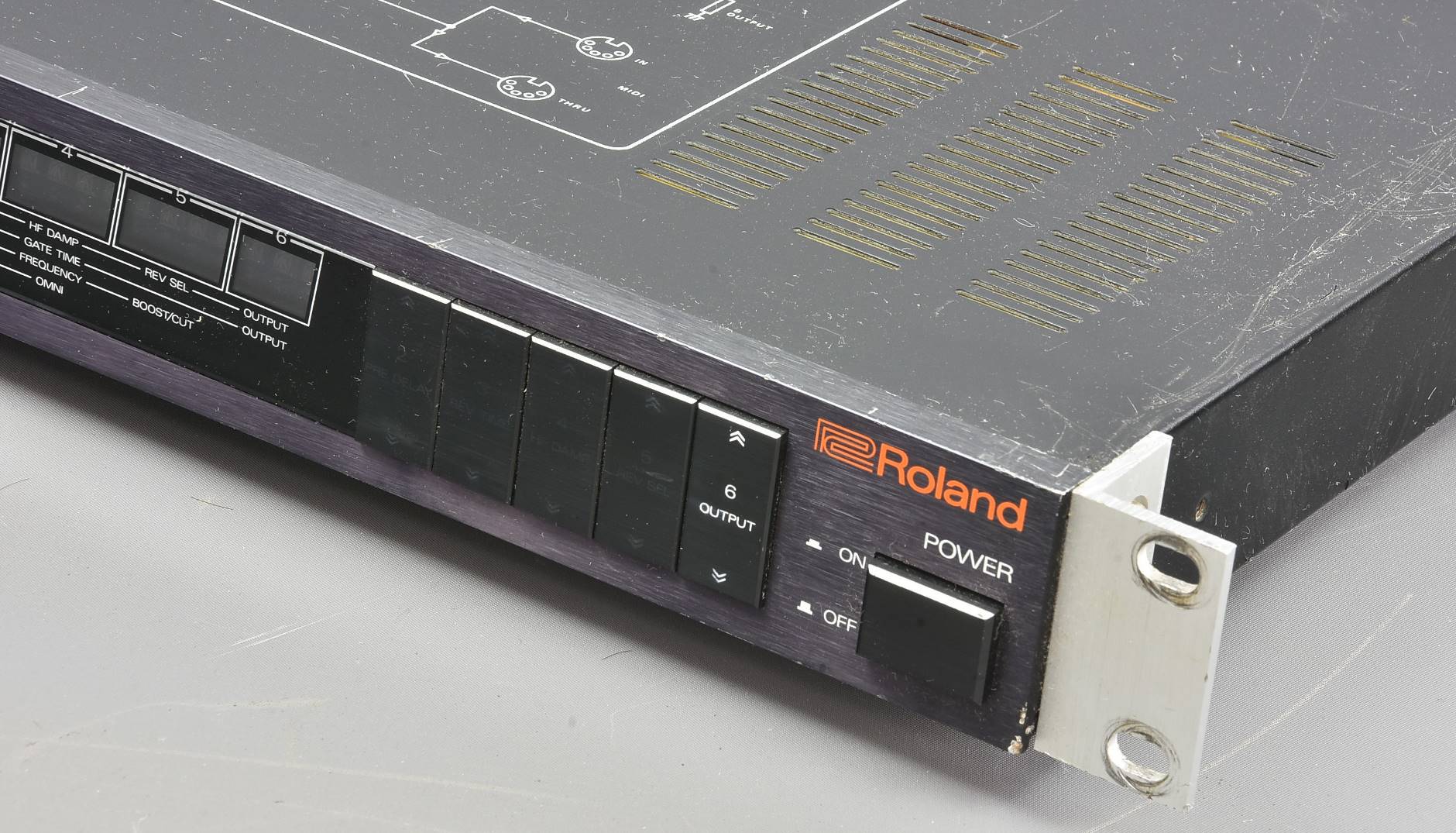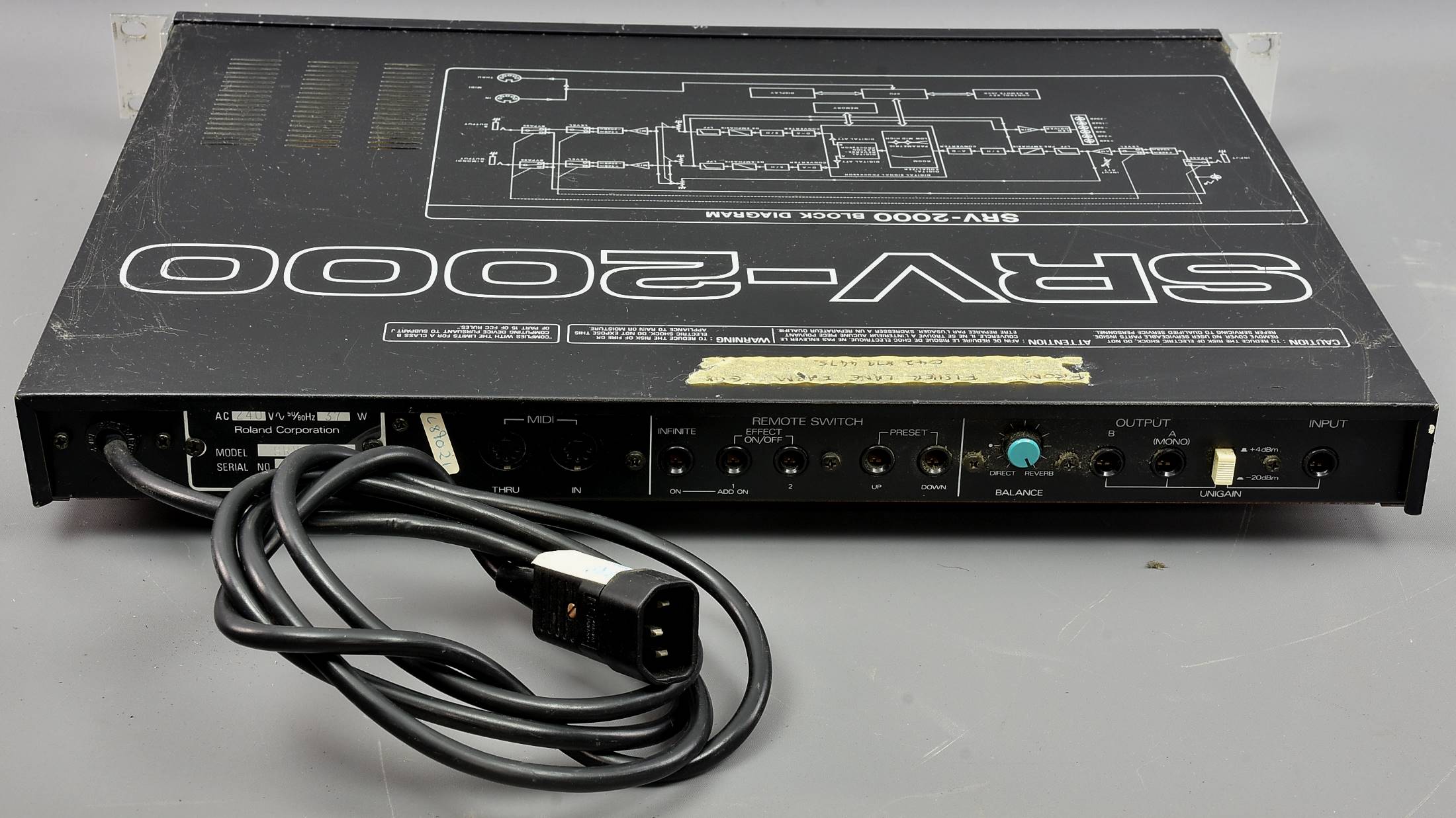 This vintage Roland reverb from Genesis / Tony Banks is a bit messy, has tape over the Bypass switch, some wear on some buttons, and the display doesn't seem to work. Otherwise un-tested, so **sold as seen**. UK/Euro flying lead with IEC female socket. Packing 6GBP. |