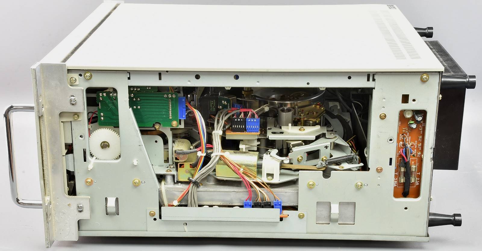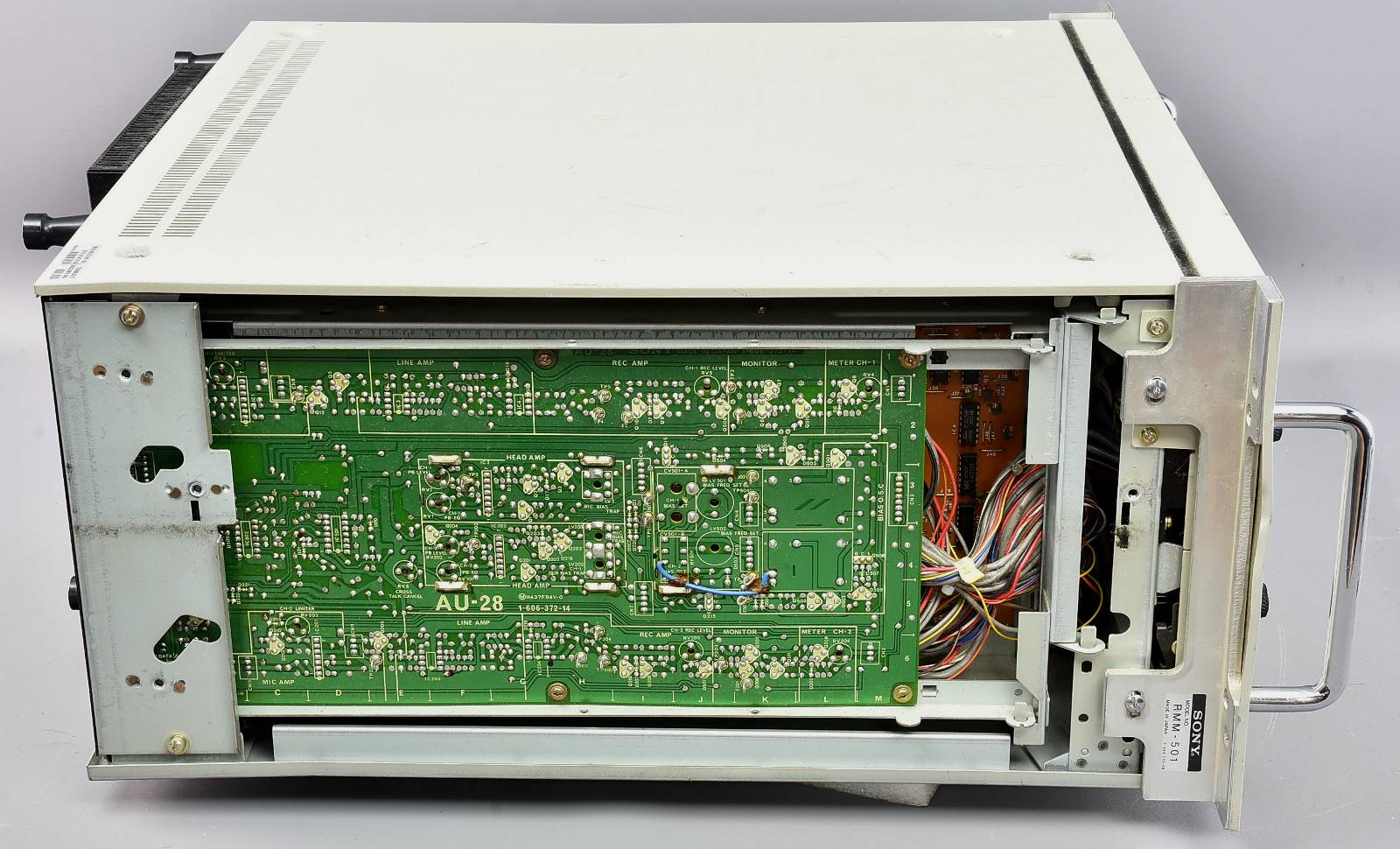 Classic old Sony U-Matic machine from Genesis. Sadly when we had it switched on for photographs, a cap went pop. Almost certain to need re-capping. Looks in very good cosmetic condition, so a nice display item even if you don't get it serviced. With rails of some sort - see pic. Has standard UK IEC lead - but clearly is designed to be installed ***safe inside a professional rack*** before powering on (after servicing!). Packing 30GBP - extremely heavy (27kg) with sharp edges. |