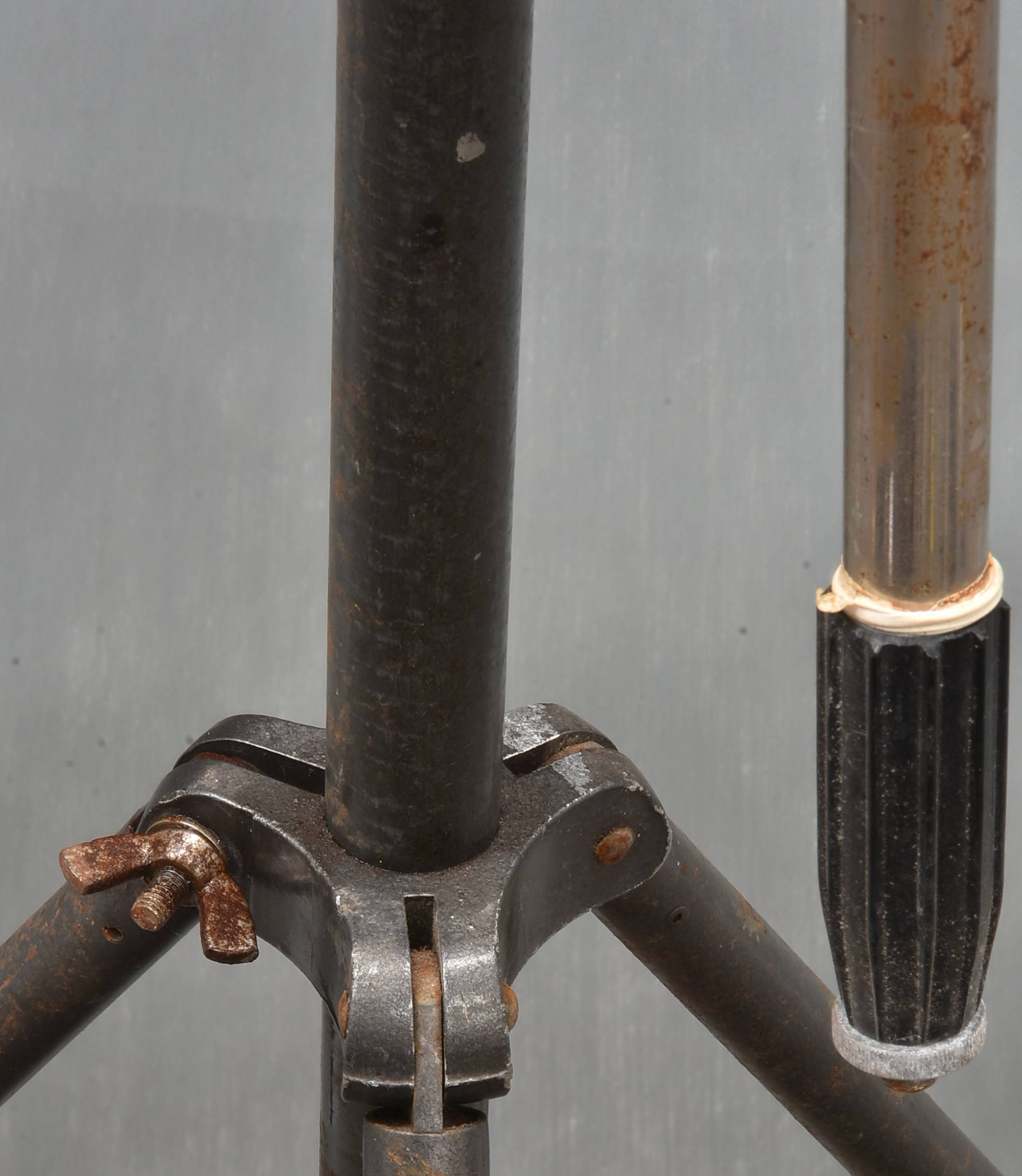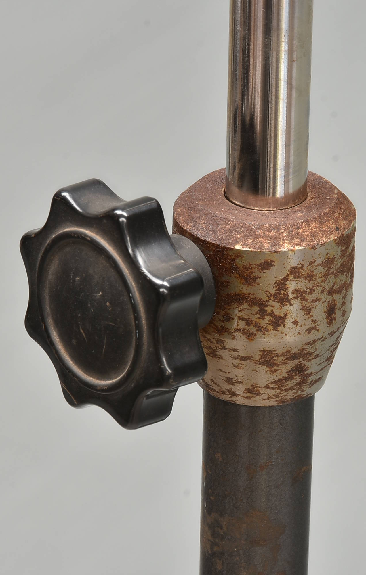 Serious professional microphone boom stand suitable for the heaviest mic array at its longest extent. Maximum height must be at least 3m - probably more. Note the massive solid metal counter-balance, which must be getting on for 2kg. Parts of the stand have a fair amount of corrosion - these could be sanded and painted black if it offends you. The important parts are all in pretty good condition and everything is easy to move, pack away or set up. Missing two rubber feet. Heavy and solid: packing 24GBP. |