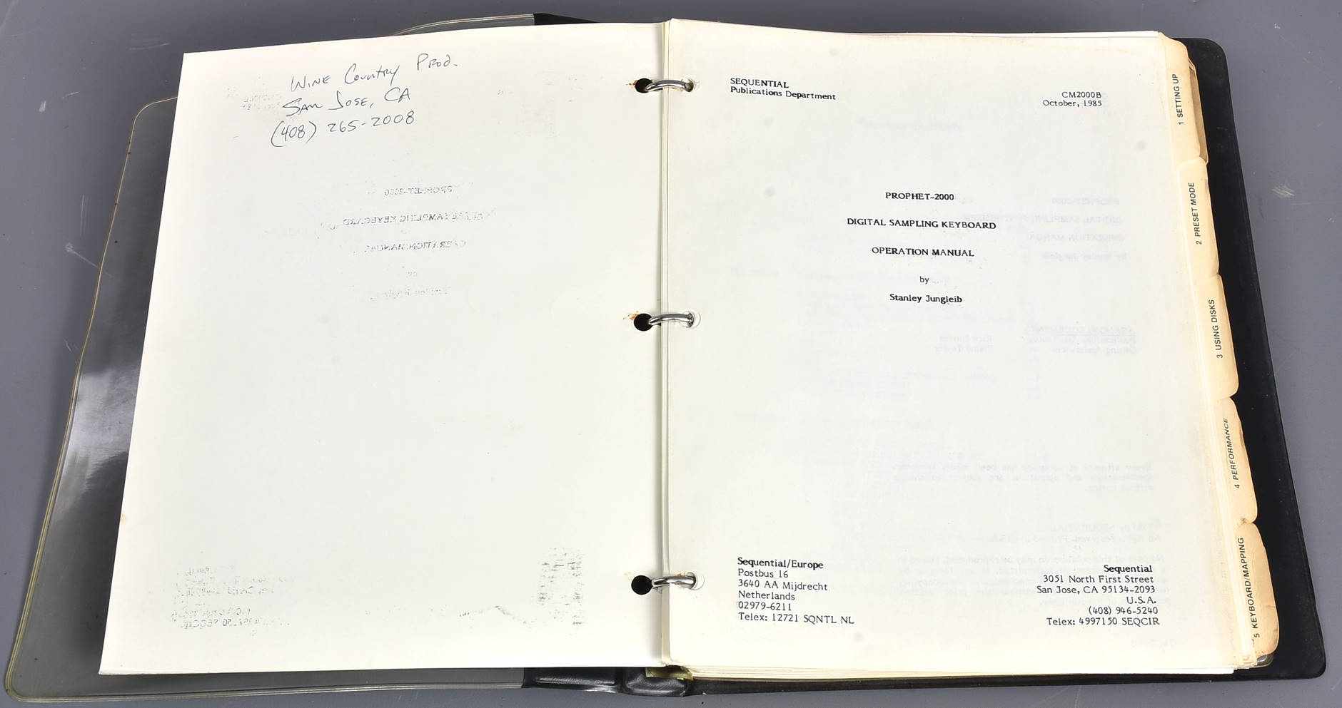 Original Sequential Circuits Inc Prophet 2000 Operational Manual. They don't make manuals like this any more! Hard cover ring binder, and index tabs. Not in pristine condition - as often happens with small-run printed items from this era, some of the printing shows up on opposing pages, and the whole item does look its age (40, as you asked). Packing 6GBP. |