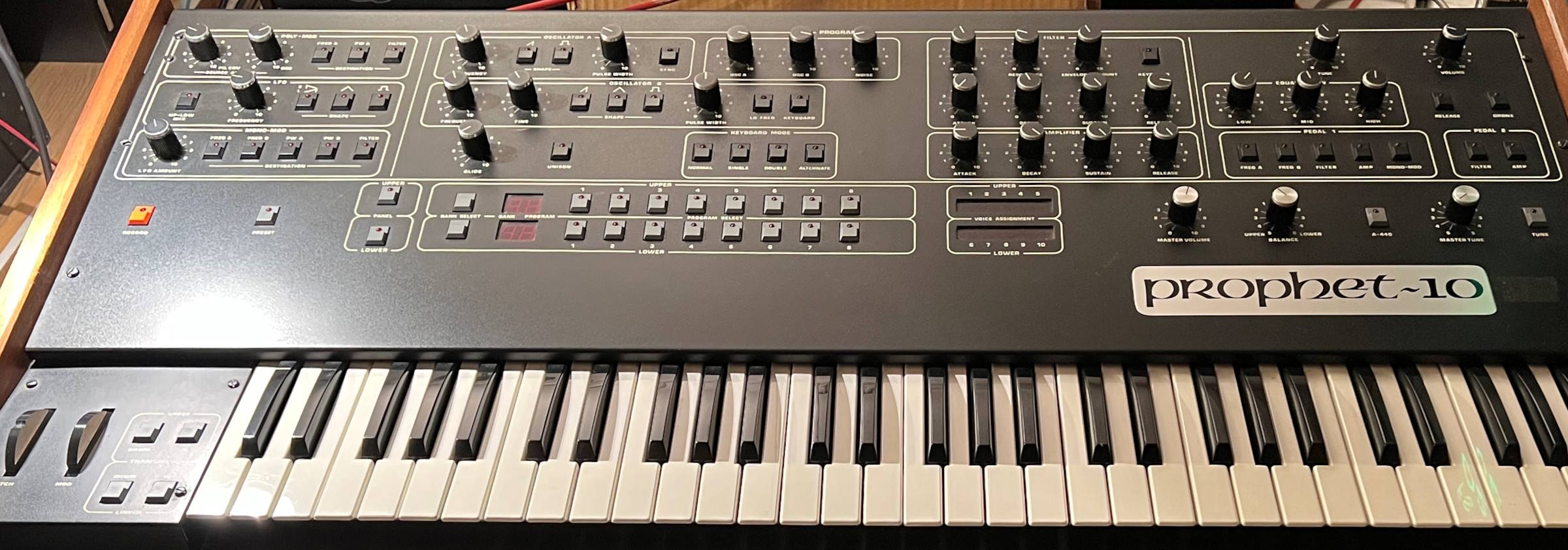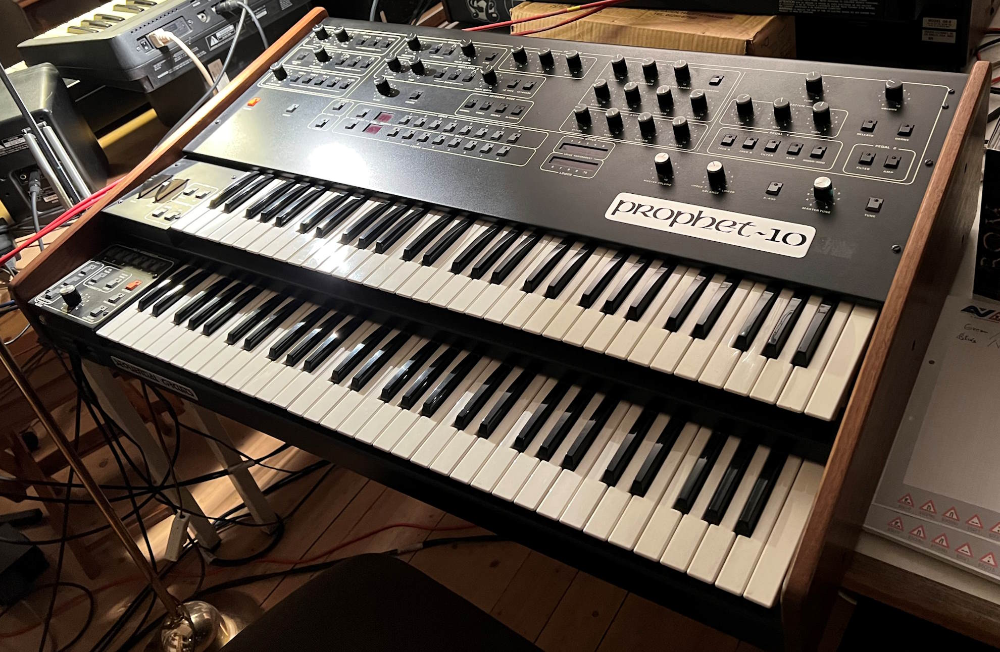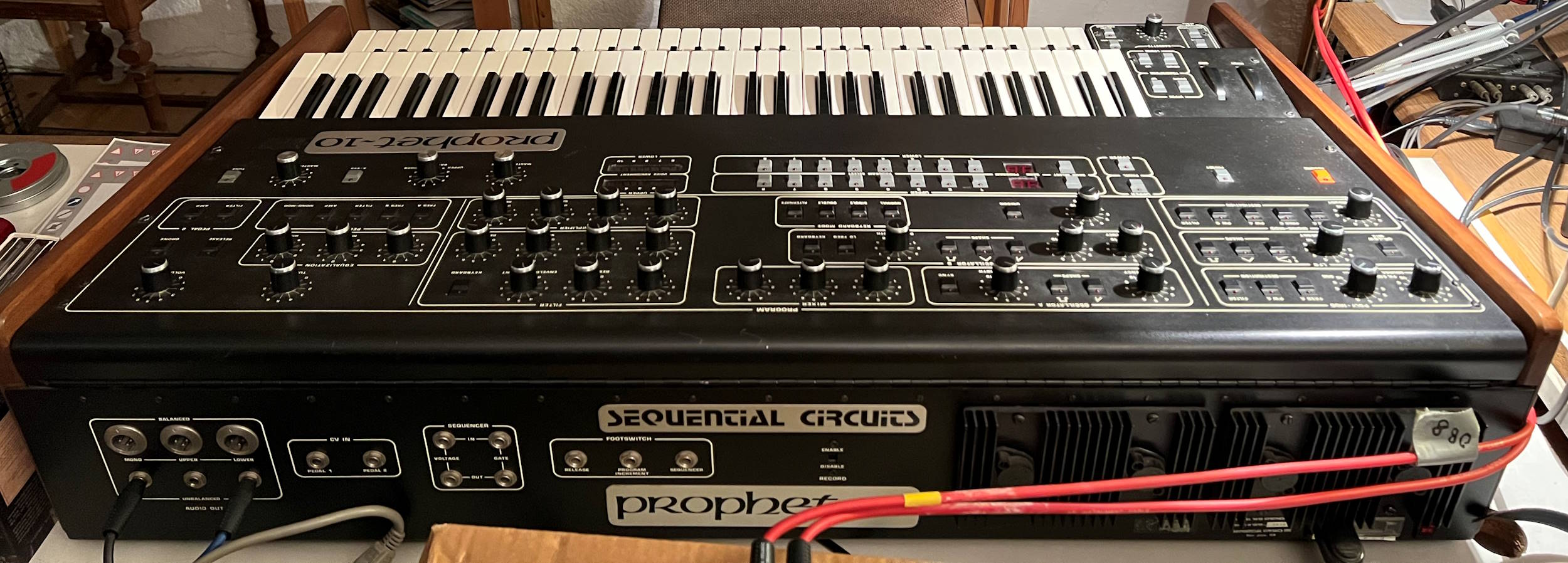 Super, rare original double-manual Prophet-10, in super cosmetic condition and with a wheeled flightcase and even a good number of Micro Communications Corp tape cartridges for the Exatron 'Stringy Floppy' - probably hugely collectable in themselves. Sounding great - just needing minor servicing - some of the contacts need a clean, and I’m not sure about the drive - not tested. The Program parameters are functional.