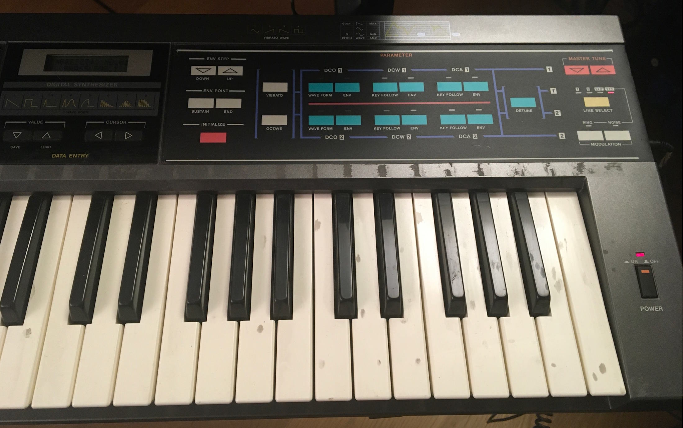 Visual condition is fair but everything seems to be working just fine. This thing sounds really good. Slightly warmer than a DX 7 and meatier. comes with power supply.