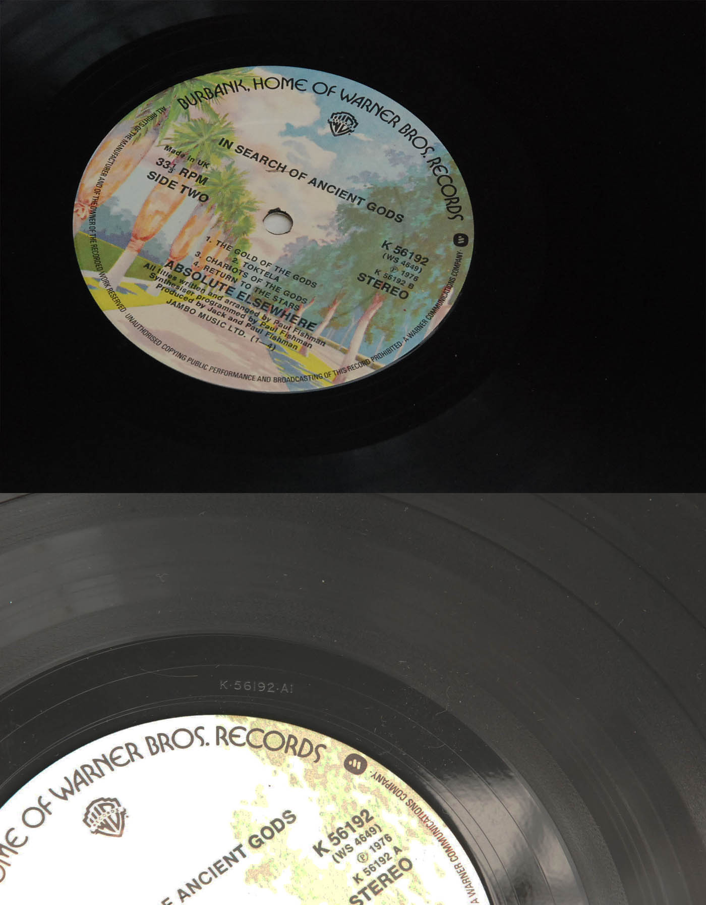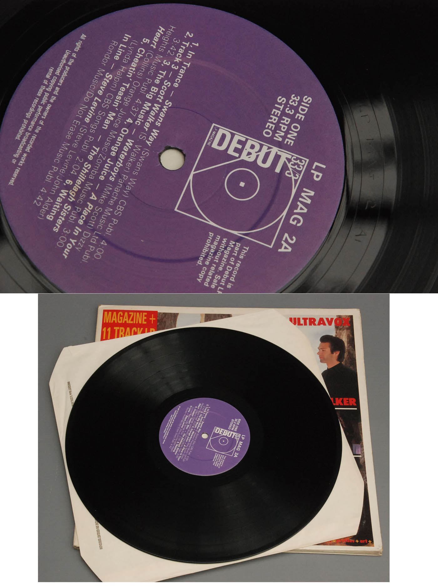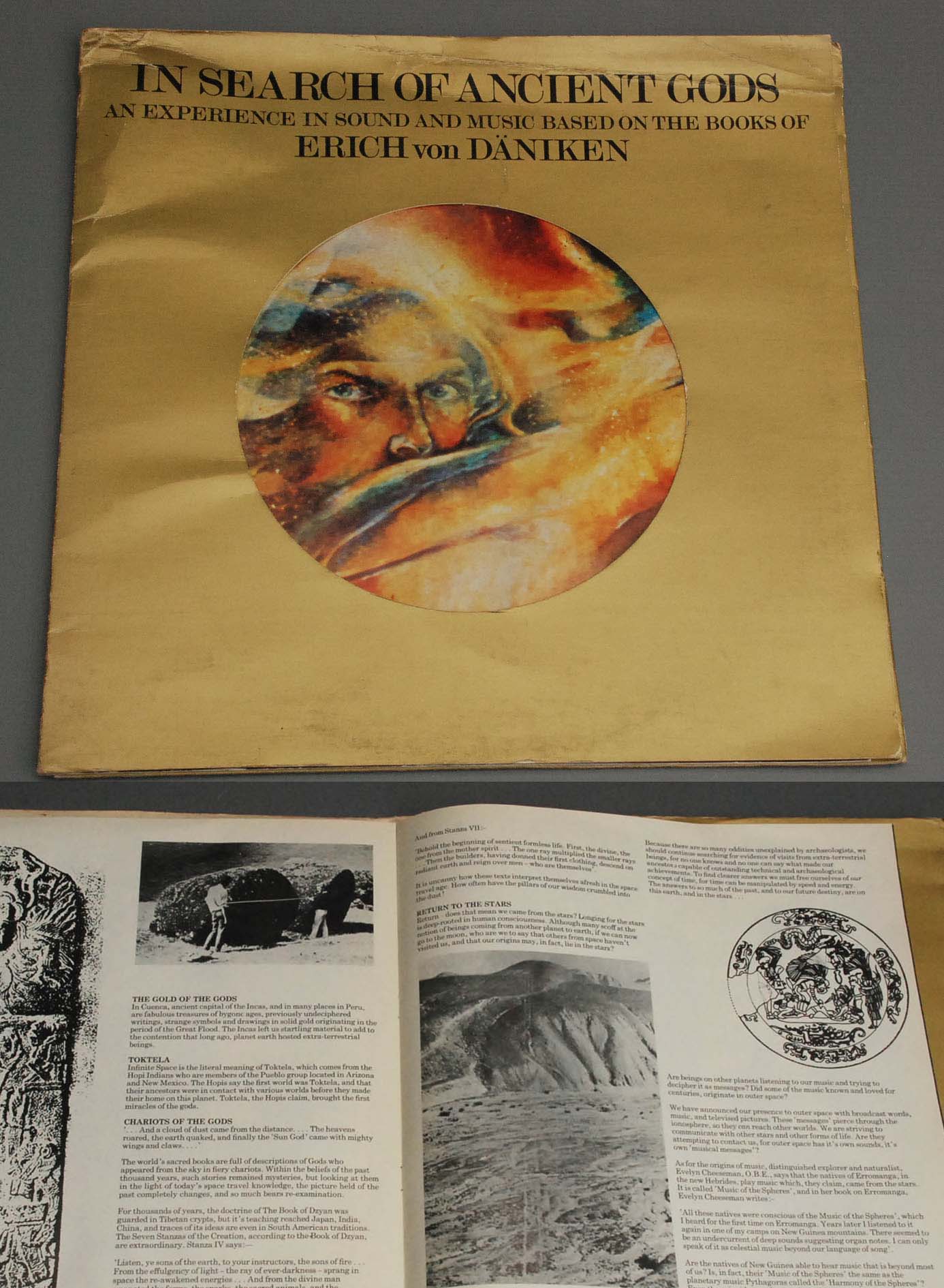 Two items: 1. In Search of Ancient Gods by Absolute Elsewhere (1976 - first release K56192, Unipak die-cut gatefold - including Paul Fishman on synths and Bill Bruford on drums. Cover is bent at the top, booklet and photograph explanatory sheet are good, record is a bit warped and has some background noise, but plays OK. There is a strange dropout halfway through side two at the end of a track, but it almost sounds more like a mastering error than a fault in the pressing. 2. Debut Magazine Issue 02 - Ultravox, Steve Levine, etc., and the chance (then!) to win an MC-202. 62-page magazine and 11-track LP. In very good condition - the LP looks like it's been played only once or twice. Packing 3GBP. |
