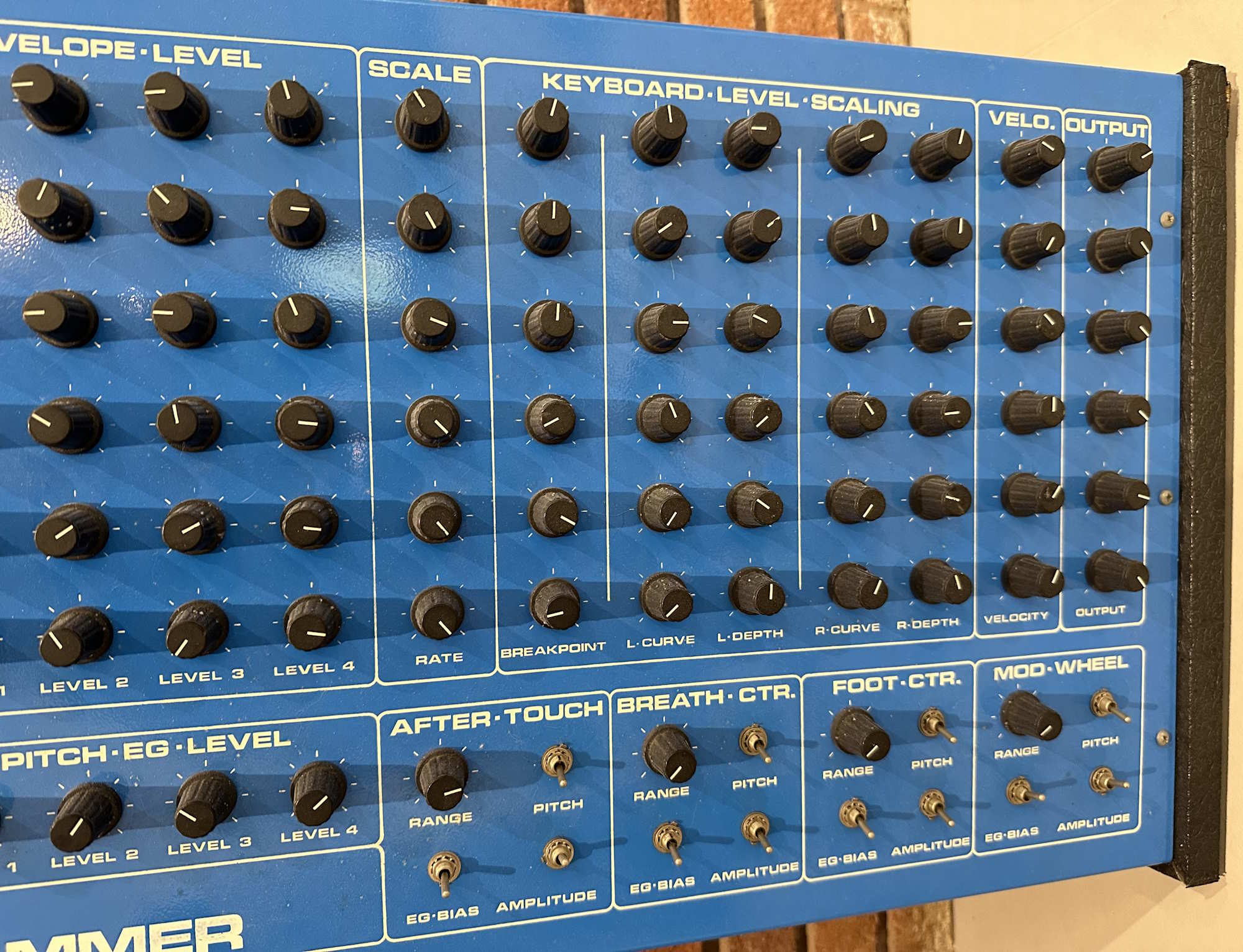 This is a beautiful original DX Programmer - one knob pointer bit missing, and a little messy round the mains inlet, but otherwise lovely. Unfortunately like one or two others we have had, non-functional. In our experience, pretty easily fixable - but you then have to make sure that it has a firm base to sit on, so it can't flex. UK/Euro mains. Provide your own IEC lead. VEMIA can collect and pack: 30GBP. |
