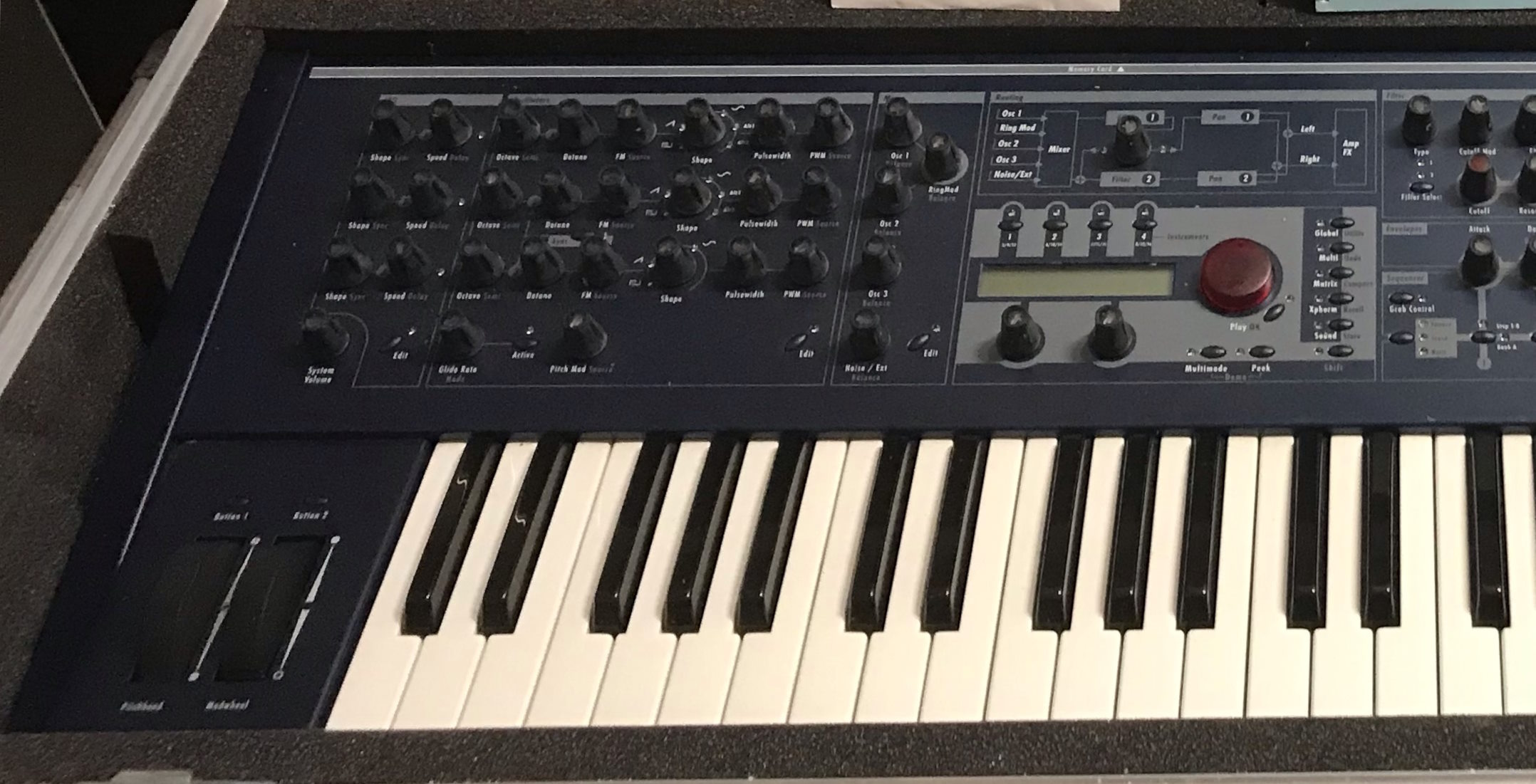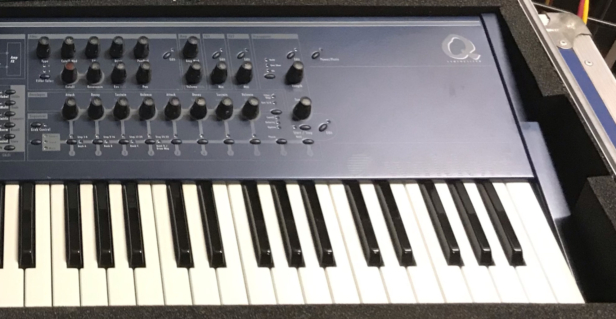Waldorf Q 61 note keyboard in dark blue in pristine condition. Copy bound manual and install disc.